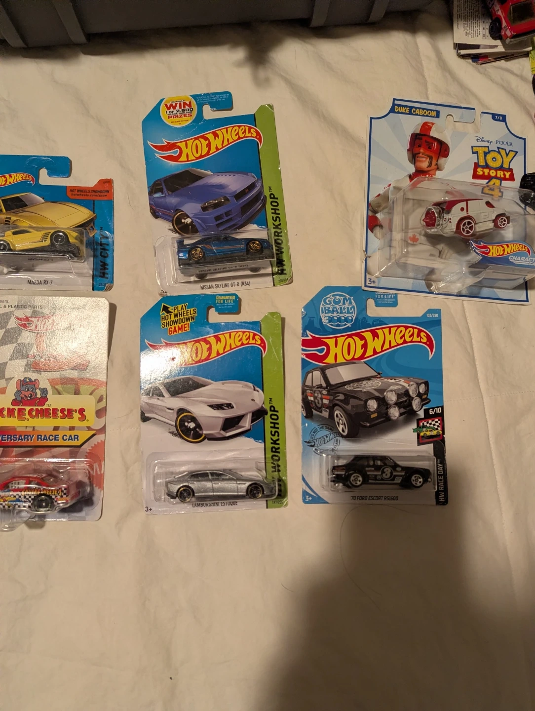 This is a lot of 5 Hot Wheels die-cast cars. These collectible cars are great for display or play. They're made of die-cast metal and plastic parts. Perfect for collectors and kids alike! Also some very sought after cars IE ( Toyota Supra F&F) ...