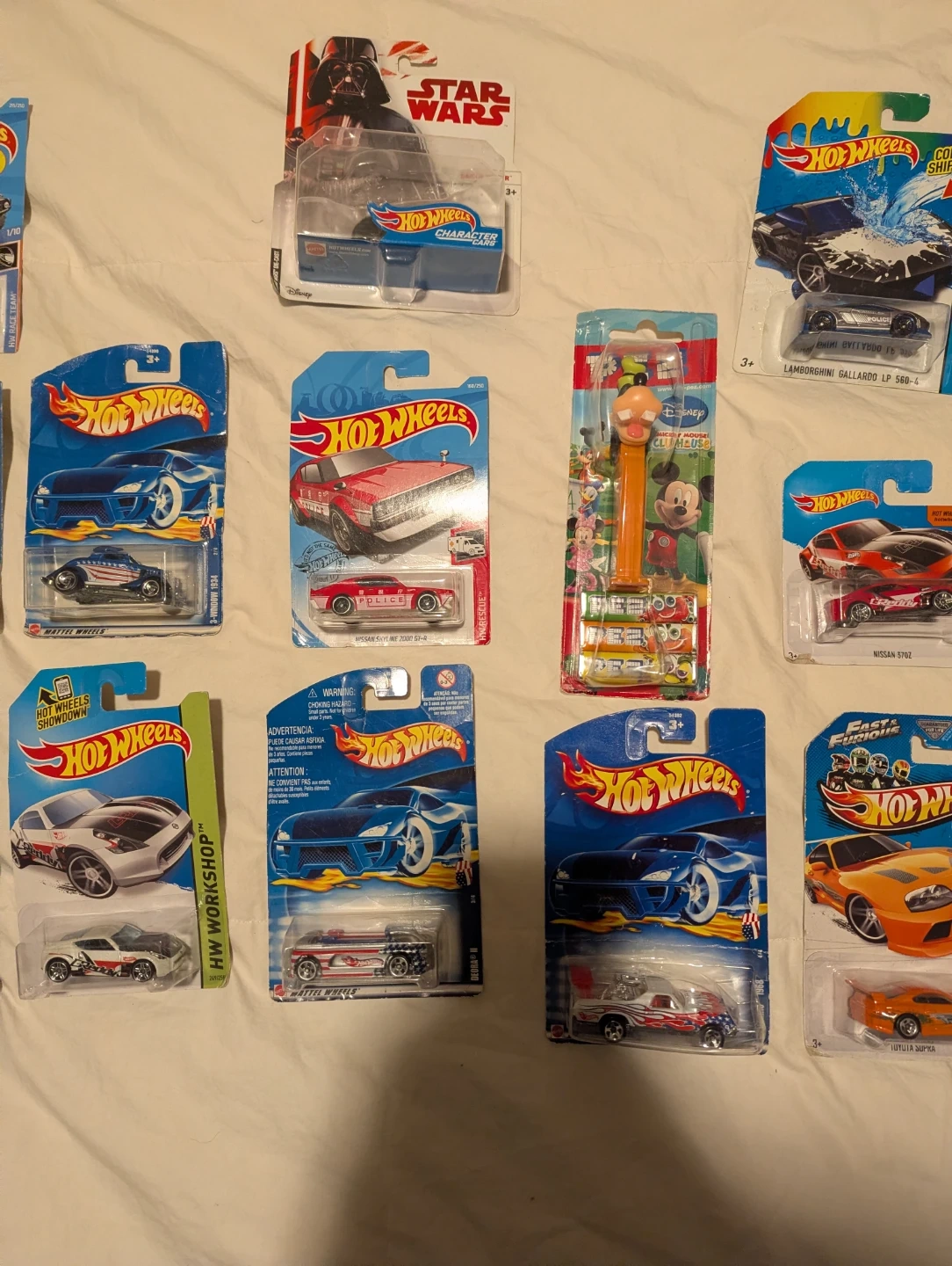 This is a lot of 5 Hot Wheels die-cast cars. These collectible cars are great for display or play. They're made of die-cast metal and plastic parts. Perfect for collectors and kids alike! Also some very sought after cars IE ( Toyota Supra F&F) ...