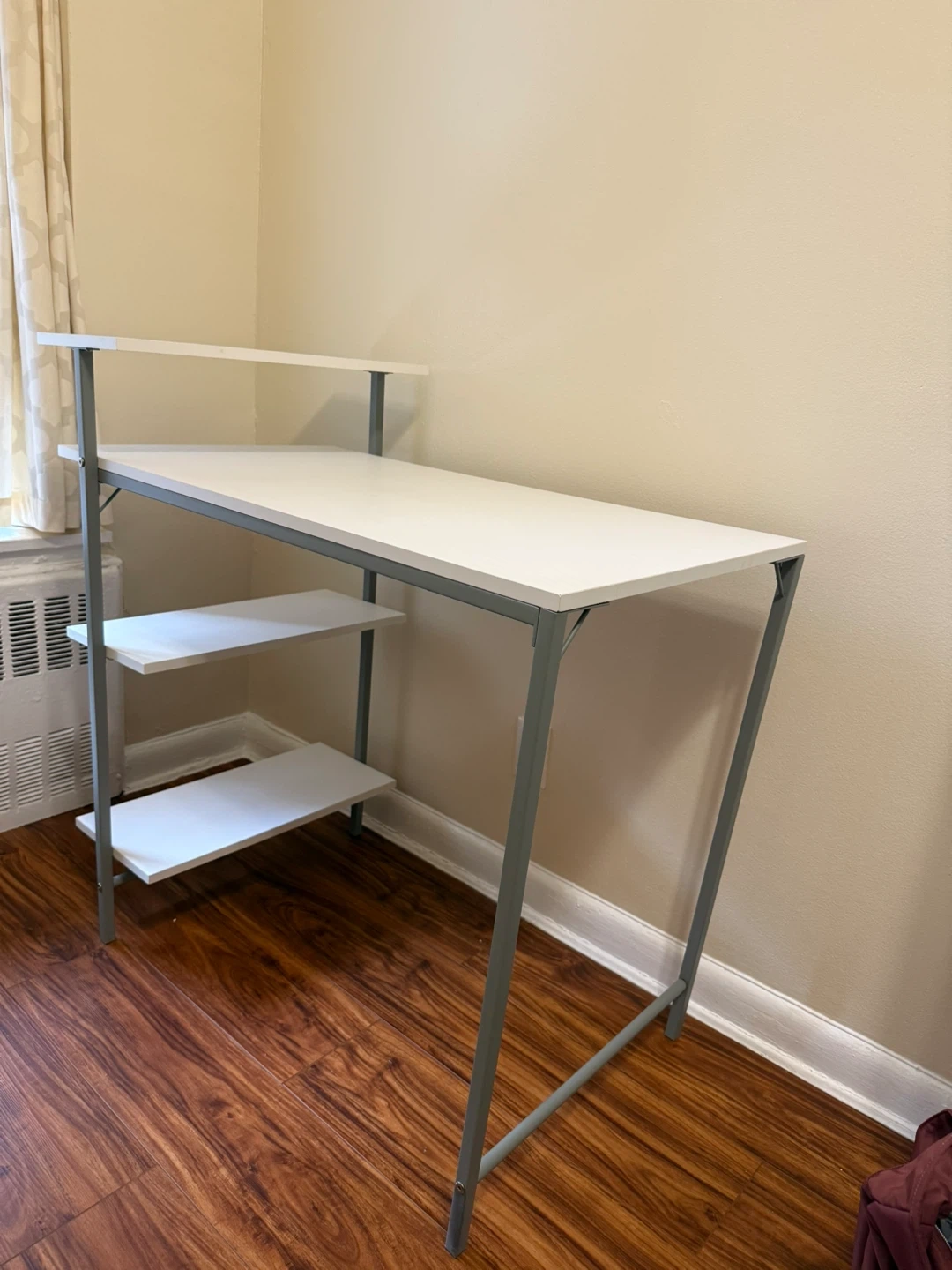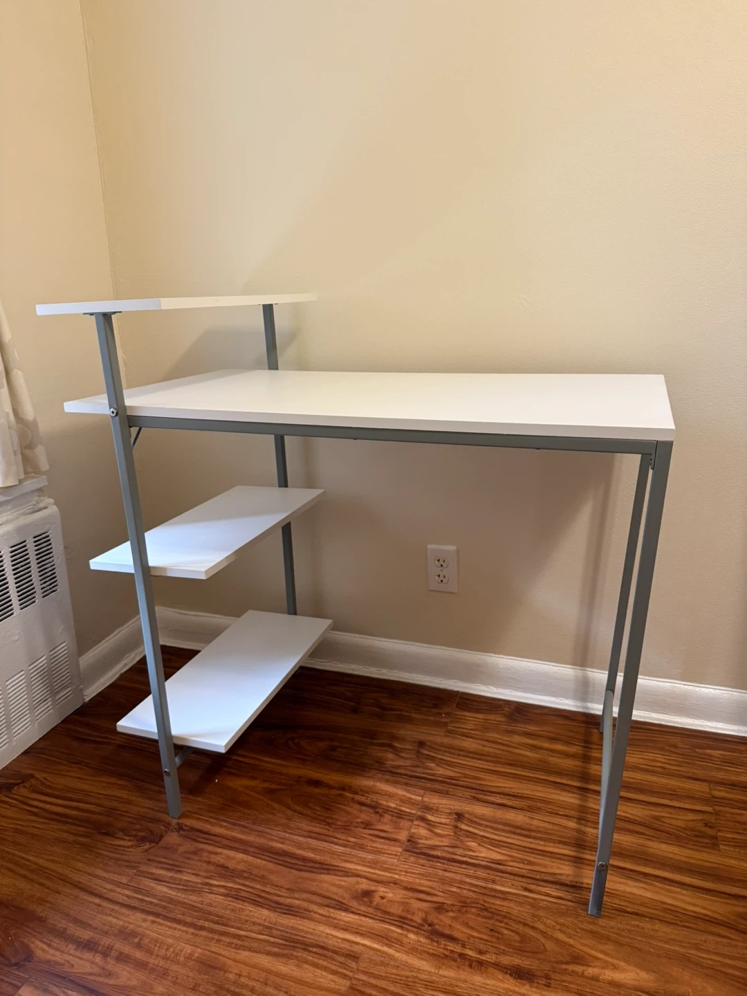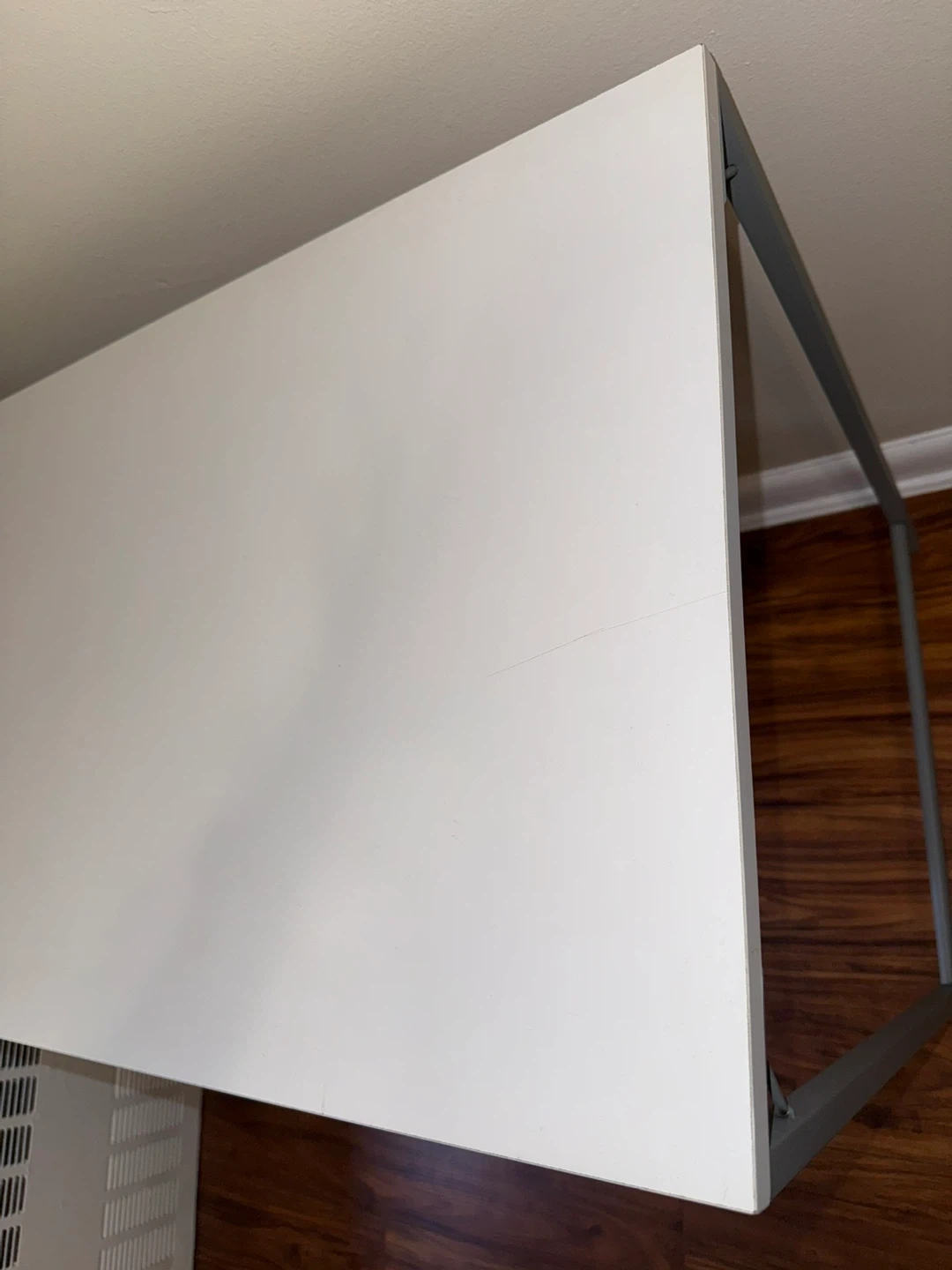 Condition: Good overall. Small scratch on the tabletop (see photo). It may wobble slightly since it does not have the back cross support, but it is still functional.