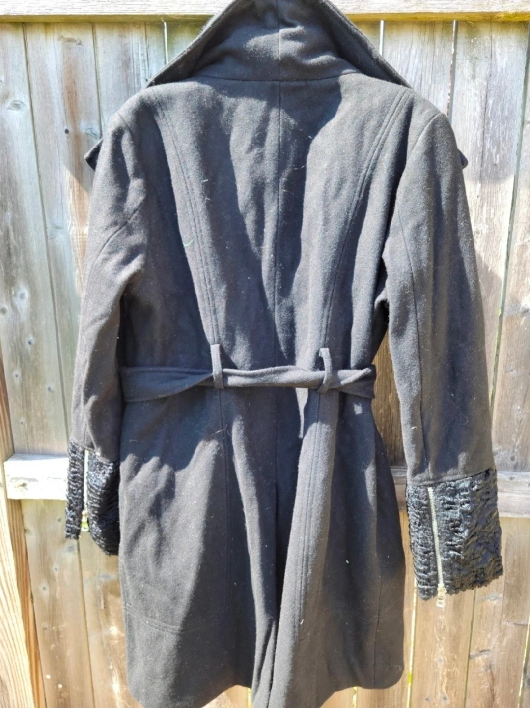 Selling a Guess Los Angeles black coat. It features a belted waist and faux fur trim on the collar and cuffs. This coat is perfect for staying warm and stylish!