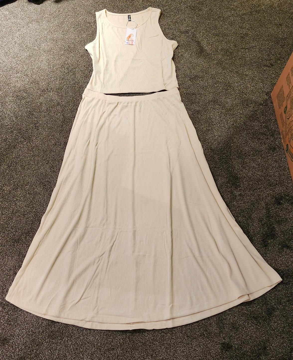 Ribbed Tank Top and Maxi Skirt Set - Cream