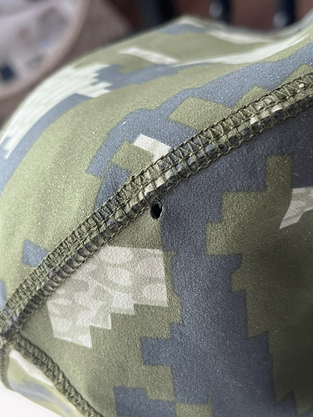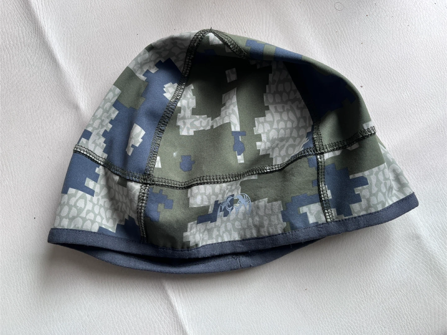 This Kuiu beanie is made with 100% polyester and features Toray fabric technologies. It has a digital camouflage pattern. There's a small hole on the side of the hat.