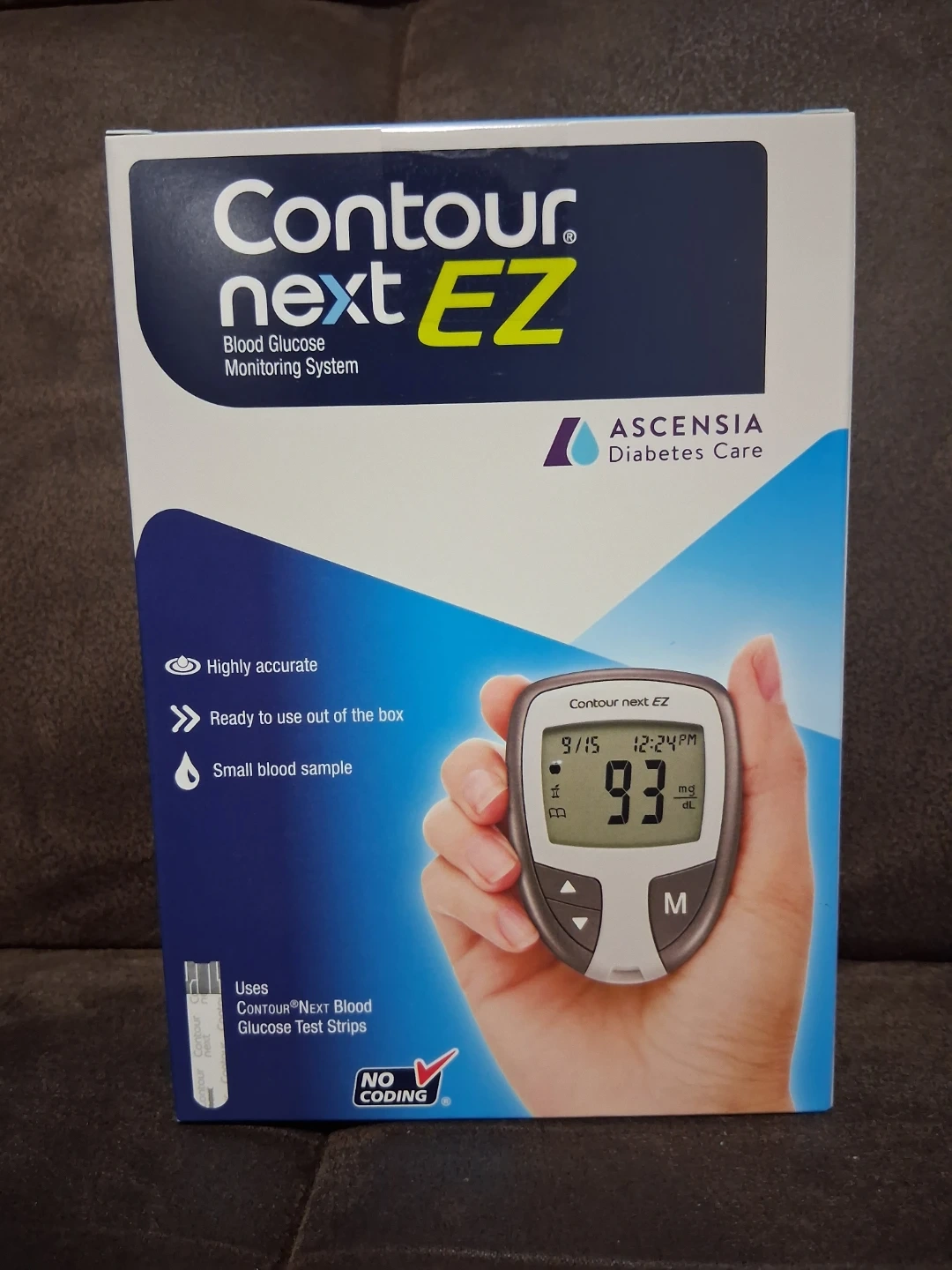 This Contour Next EZ blood glucose monitoring system is highly accurate and ready to use out of the box. It uses Contour Next Blood Glucose Test Strips and requires a small blood sample. It's no coding.