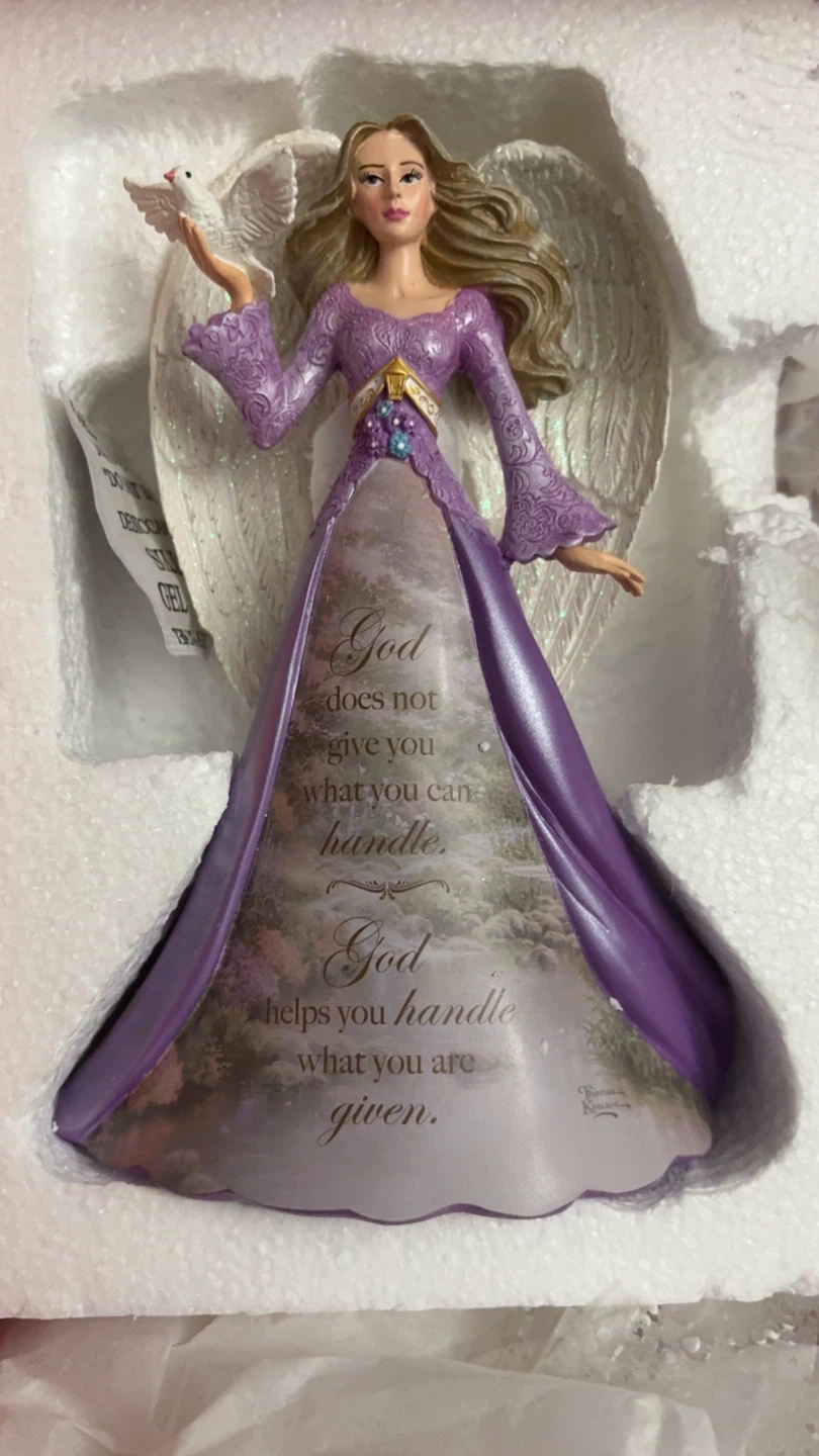 This is a beautiful Thomas Kinkade angel figurine from The Hamilton Collection. The dress features the quote "God does not give you what you can handle. God helps you handle what you are given". It comes with a certificate of authenticity.