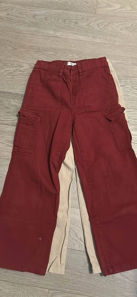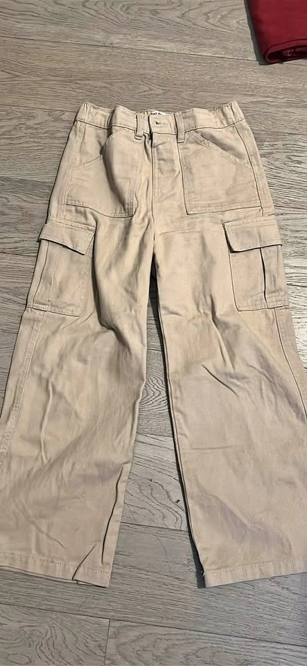 Wide leg fit cargo pants with tons of pockets. Fits 4’9-5’2.