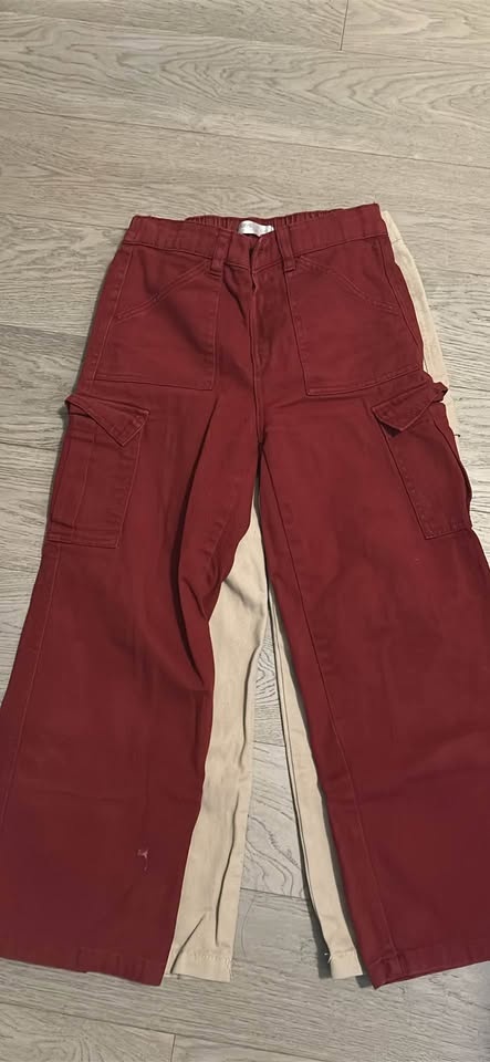 2 Pairs Wide Leg Cargo Pants - Beige & Maroon