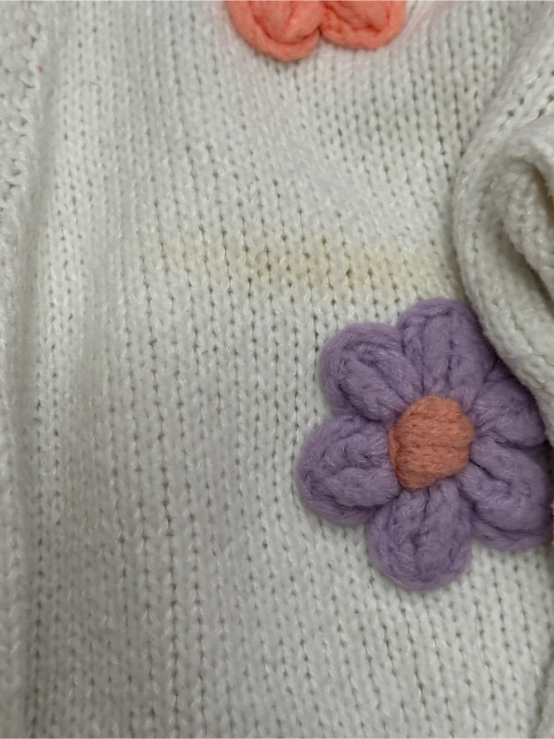There are some light yellow stains on the front of the sweater.