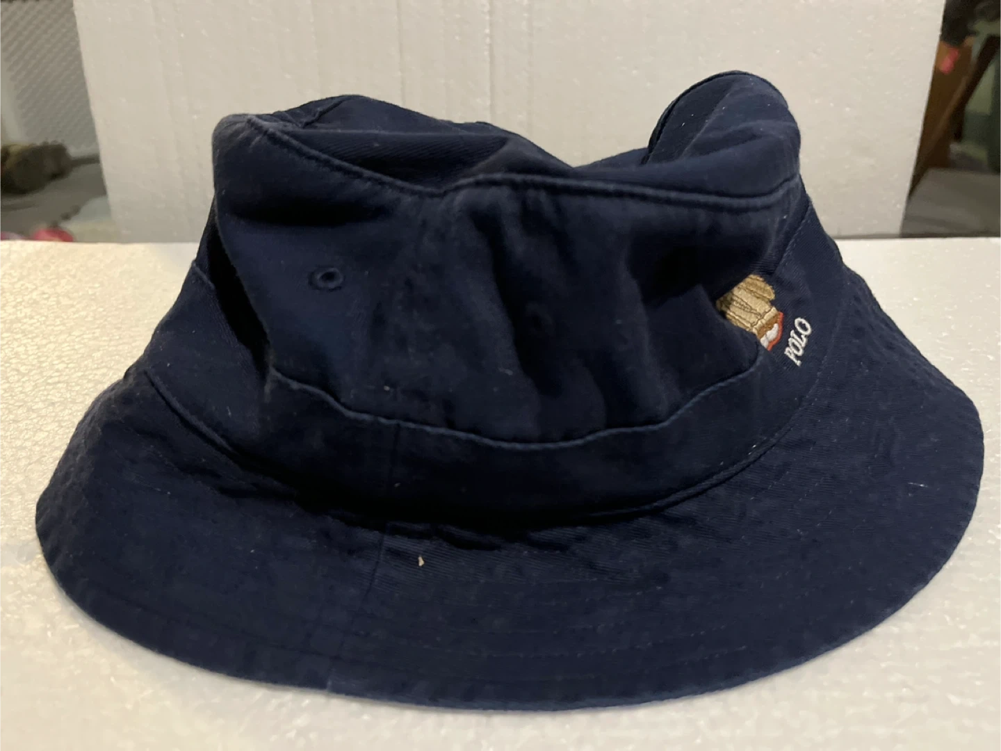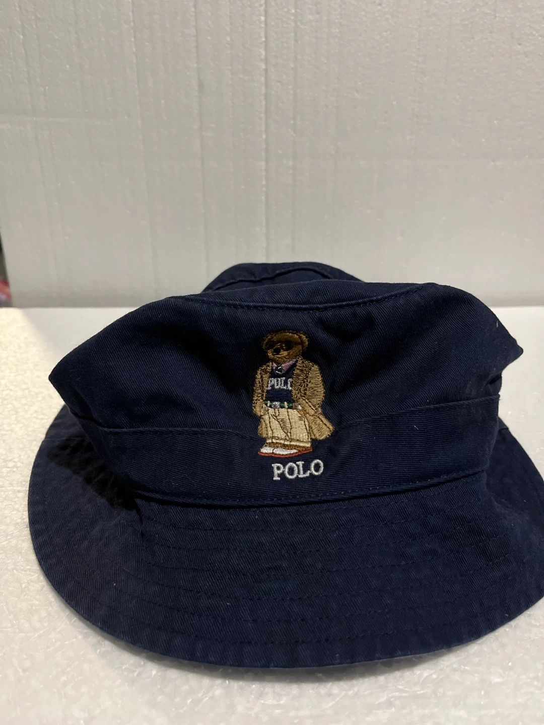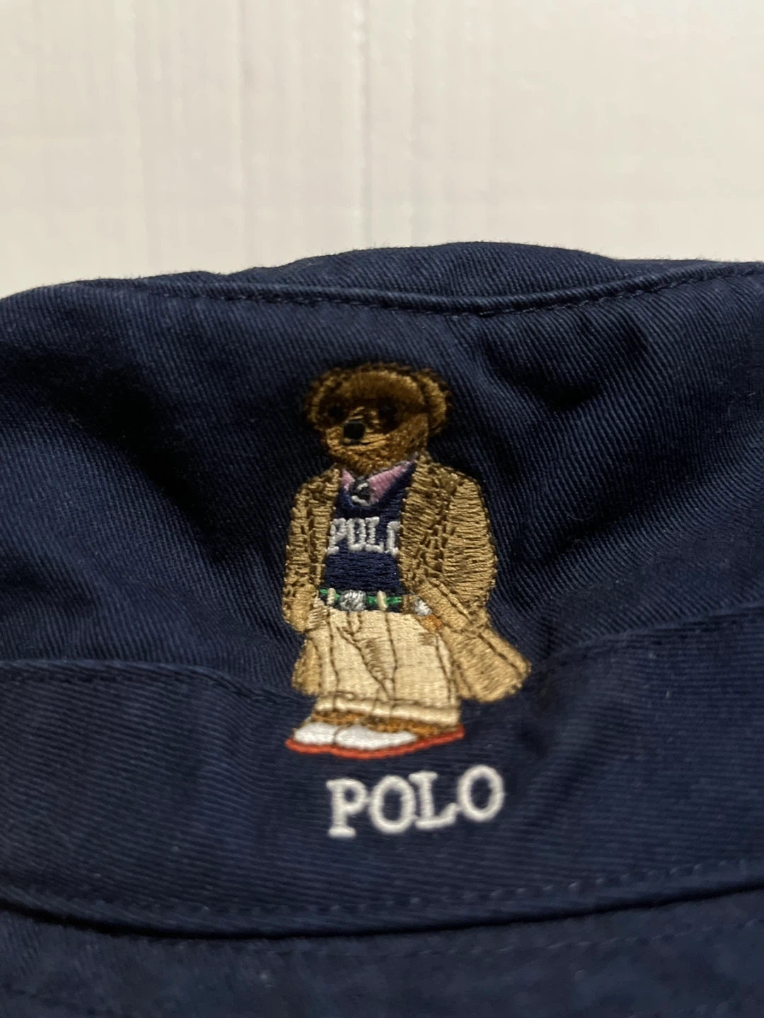 Navy bucket hat from Polo Ralph Lauren featuring a classic bear embroidery. Made from 100% cotton. Size S/M. It's non-reversible with a light blue interior lip.