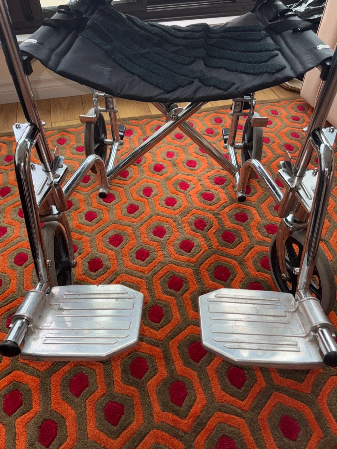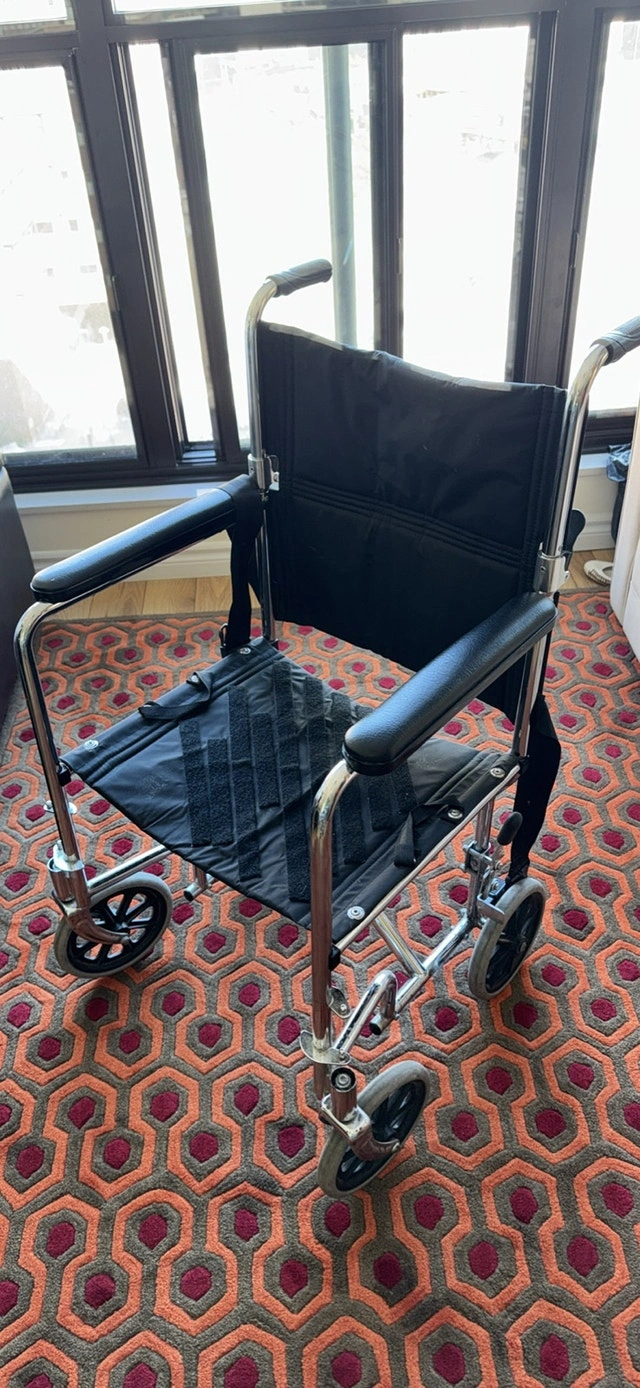 This is a well used item, and it is missing the seat cushion. However, the wheel chair still works smoothly. It is a bit dirty from use over time. Cash accepted, Cashless payment.