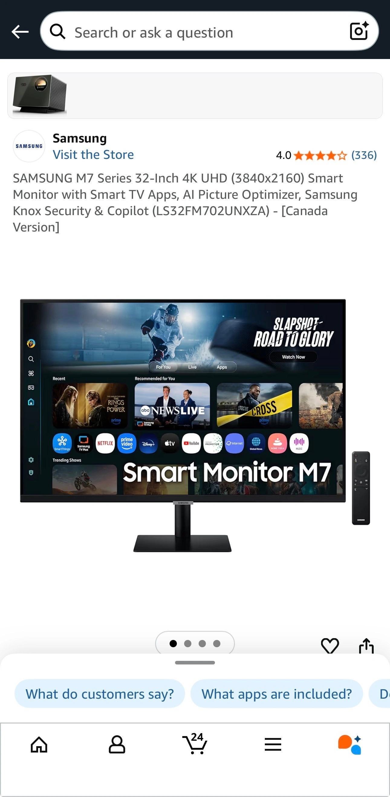 SAMSUNG M7 Series 32-Inch 4K UHD (3840x2160) Smart Monitor with Smart TV Apps, AI Picture Optimizer, Samsung Knox Security & Copilot