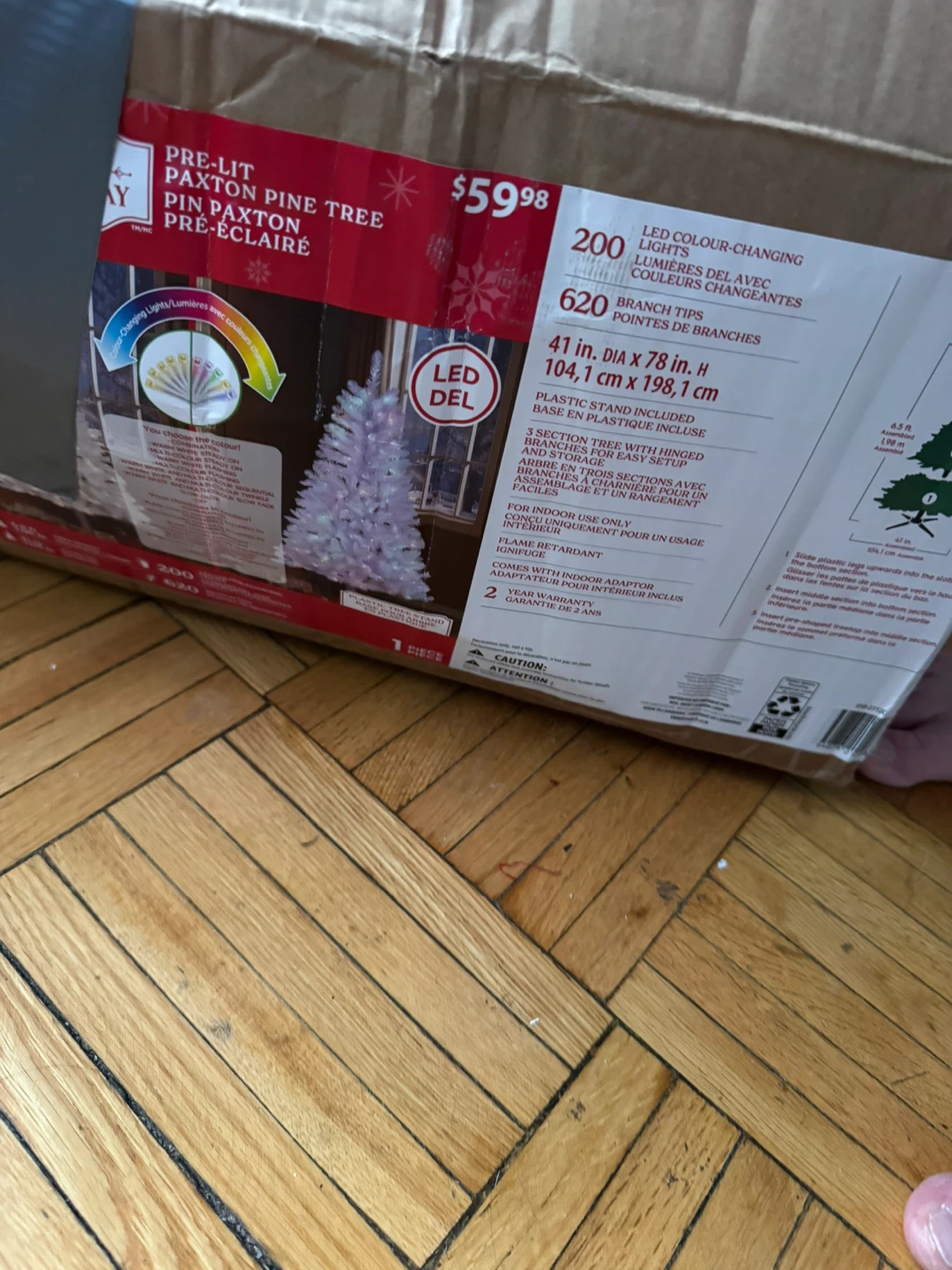 It has 200 LED colour-changing lights and 620 branch tips. The tree is 41 inches in diameter and 78 inches in height. It also comes with a plastic stand