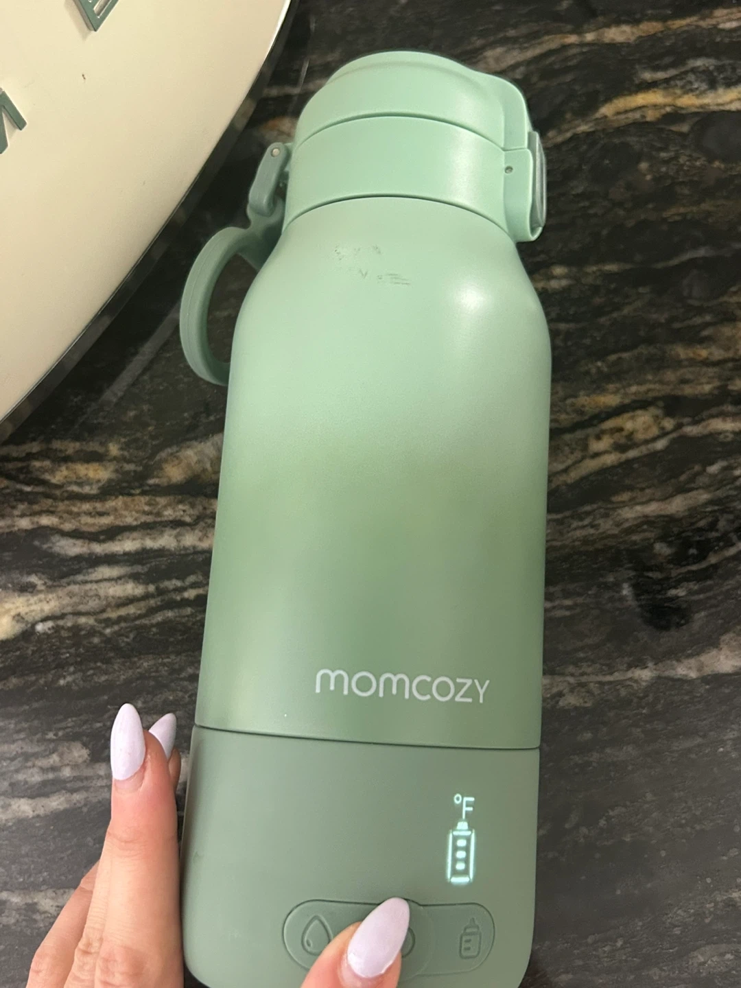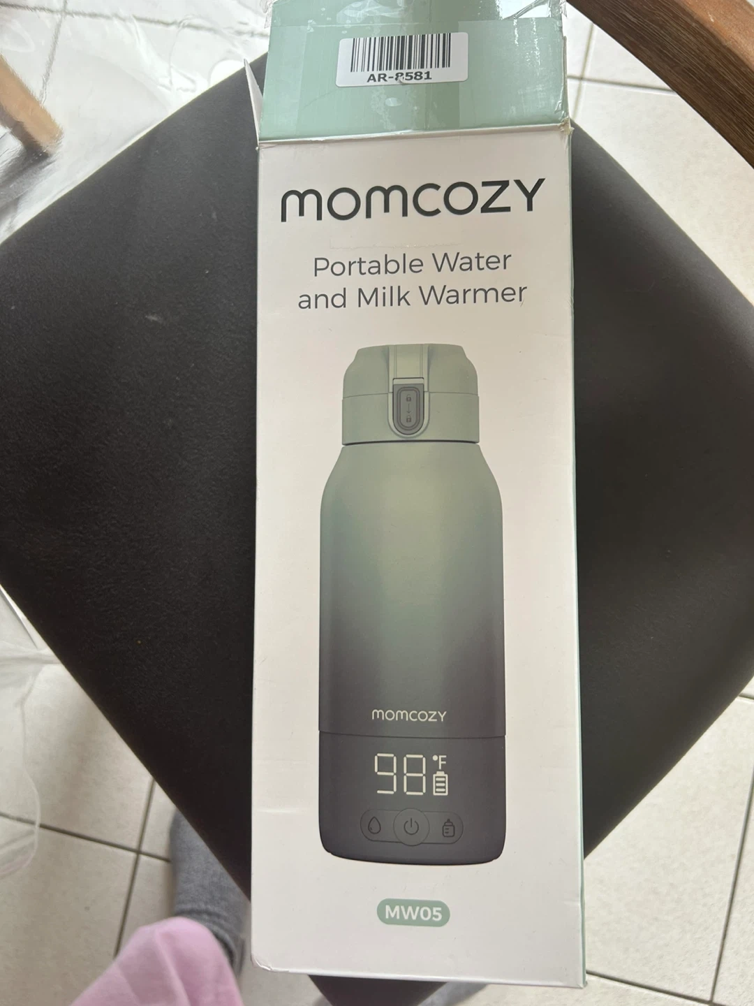 This Momcozy portable water and milk warmer is perfect for on-the-go. It's rechargeable and features a digital temperature display. Comes with the original box.
