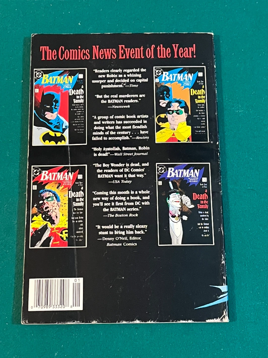 This graphic novel collects all four collector's item issues of Batman: A Death in the Family in one volume. Fourth Print.