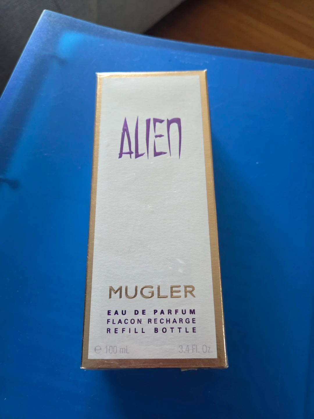 This is a Mugler Alien Eau de Parfum refill bottle. It's 100ml / 3.4 fl. oz. for refilling your existing fragrance.