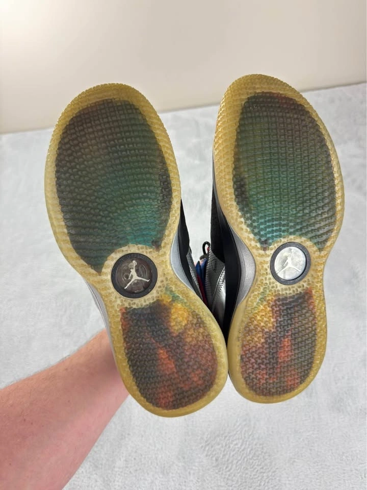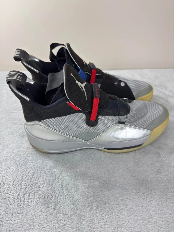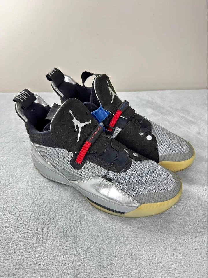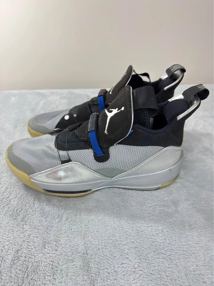 Jordan Men's Sz 10.5 US/9.5 UK/44.5 EU XXXIII Metallic Silver Black All Star in good pre owned condition as shown in the photos with usual wear and tear for shoes but no major flaws. Doesn't include original box.