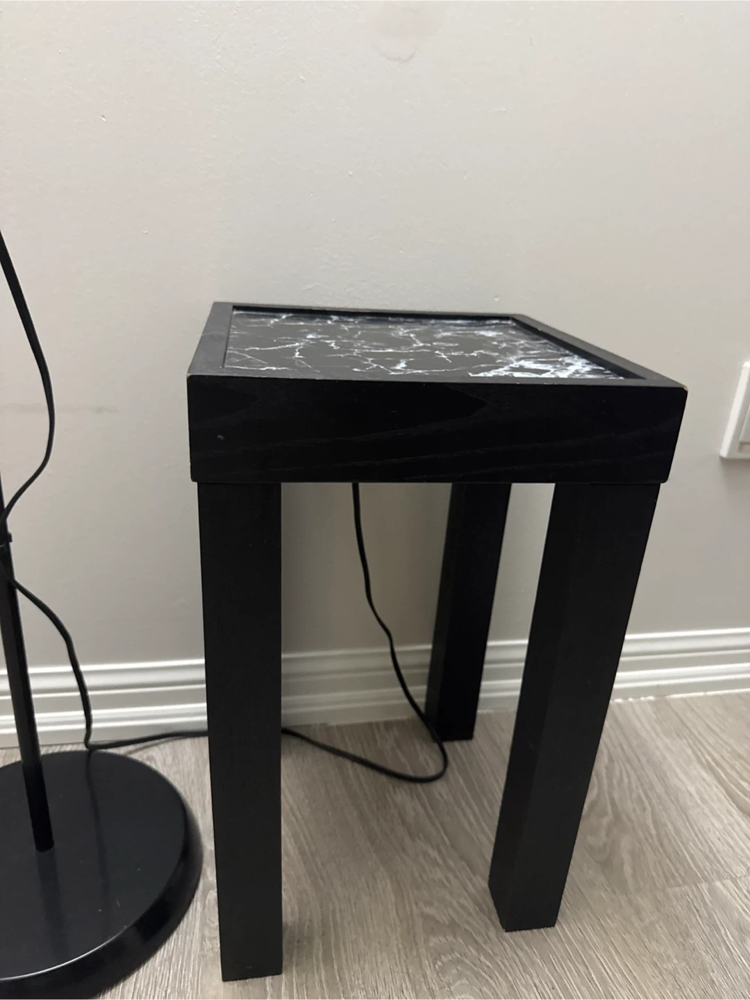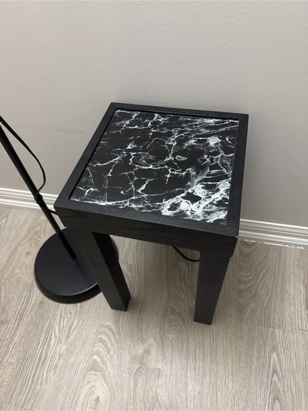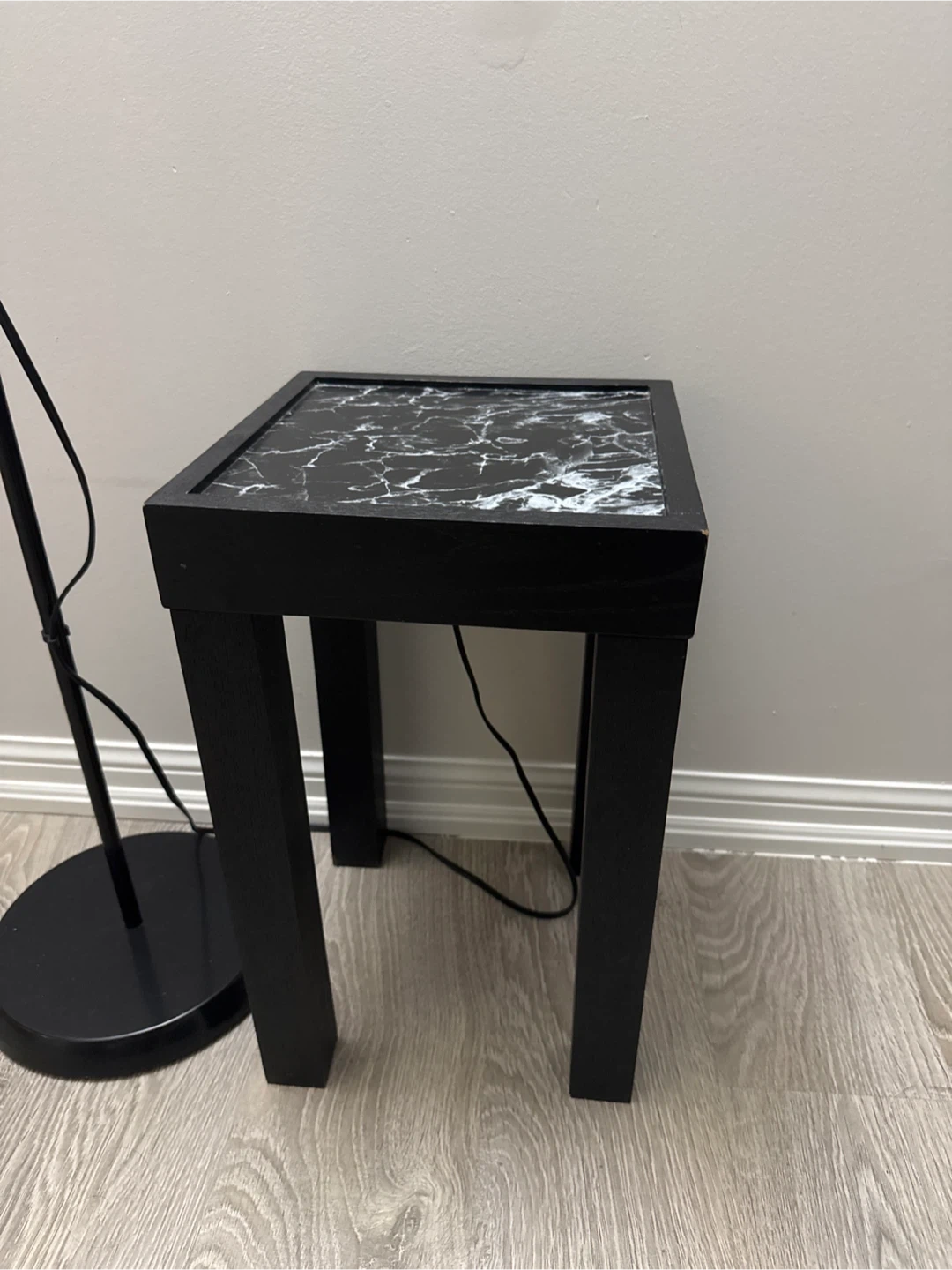 Black Side Table with Marble Top