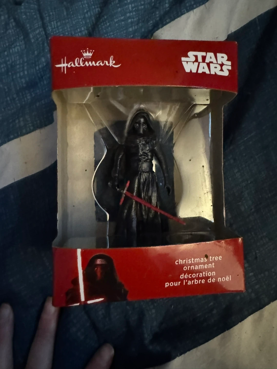 Add a touch of the dark side to your tree with this Hallmark Star Wars Christmas ornament featuring Kylo Ren. It's perfect for any Star Wars fan's holiday decor. This ornament is in its original packaging.