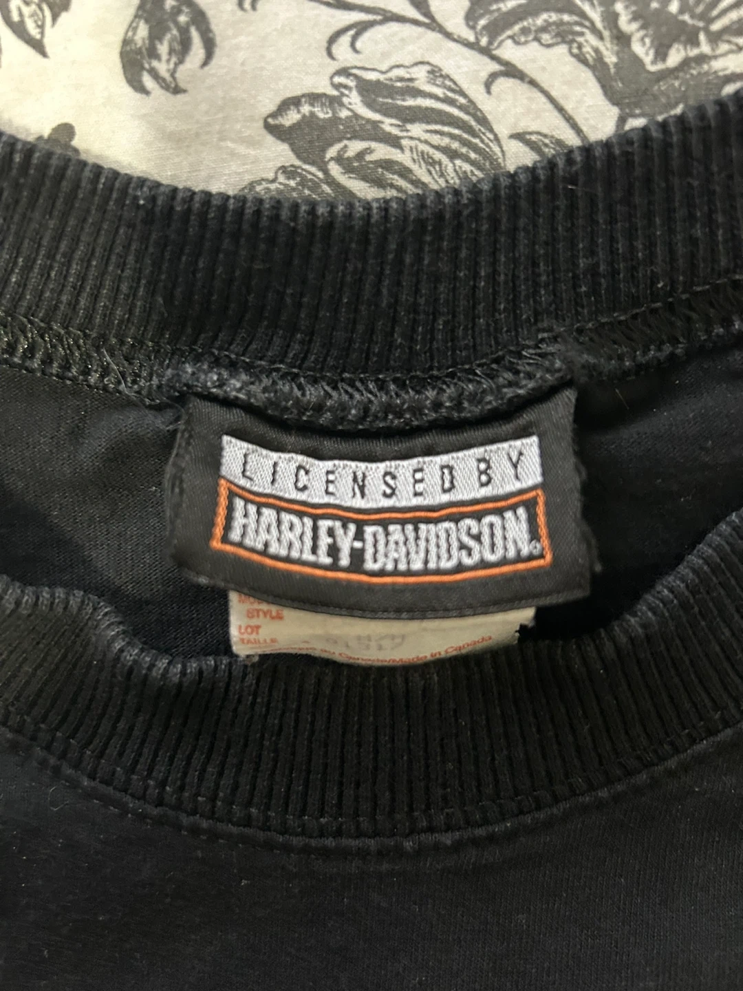 Black Harley-Davidson t-shirt with "Life is Simple. Eat. Sleep. Ride a Harley." graphic. 100% cotton. Made in Canada.