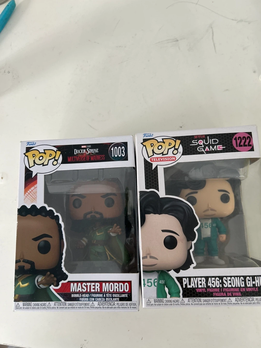Selling two Funko Pop! figures: Master Mordo from Doctor Strange: Multiverse of Madness (1003) and Player 456 Seong Gi-Hun from Squid Game (1222)