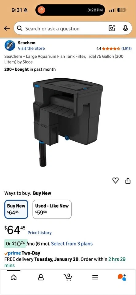 Selling 2 Seachem Tidal 75 filters. Used for less than a year and have been working great. They have been scrubbed and are ready to be used. Note: there are some algae spots.