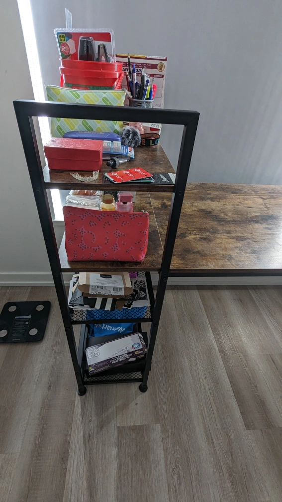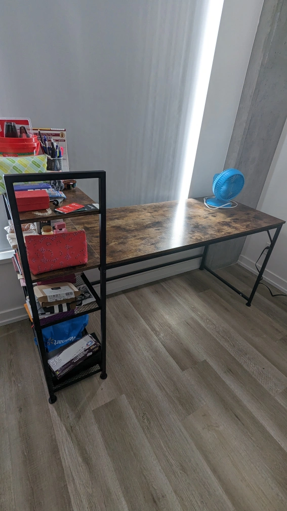 The office desk is made of sturdy MDF board and steel frame.The table top and the steel frame of the computer desk have a special protective layer design to prevent impact and waterproof. The size of the computer work desk is 63 x 23.6 x 43.3 inch.