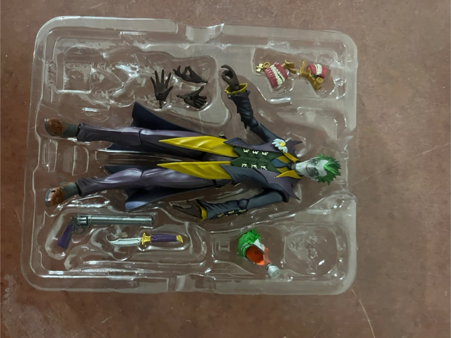 This is a detailed action figure of The Joker, inspired by his comic book appearance. It comes with multiple accessories, including interchangeable hands, weapons, and alternate heads for different expressions. A must-have for collectors!