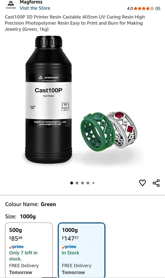 1 / 21 / 2Buy & Sell3D Printing Casting Resin 1000g - New3D Printing Casting Resin 1000g - New$50Feel free to message if you have any questions!WHERE TO MEETCheck LocationView MapSELLERMarkPalmer1876 reviews0 chats·1 favorites·4 viewsSEND CHAT TO SELLERHi Mark! I’m interested in your listing.Hi Mark! I’m interested in your listing.Get the Karrot app to chatSign In to chat