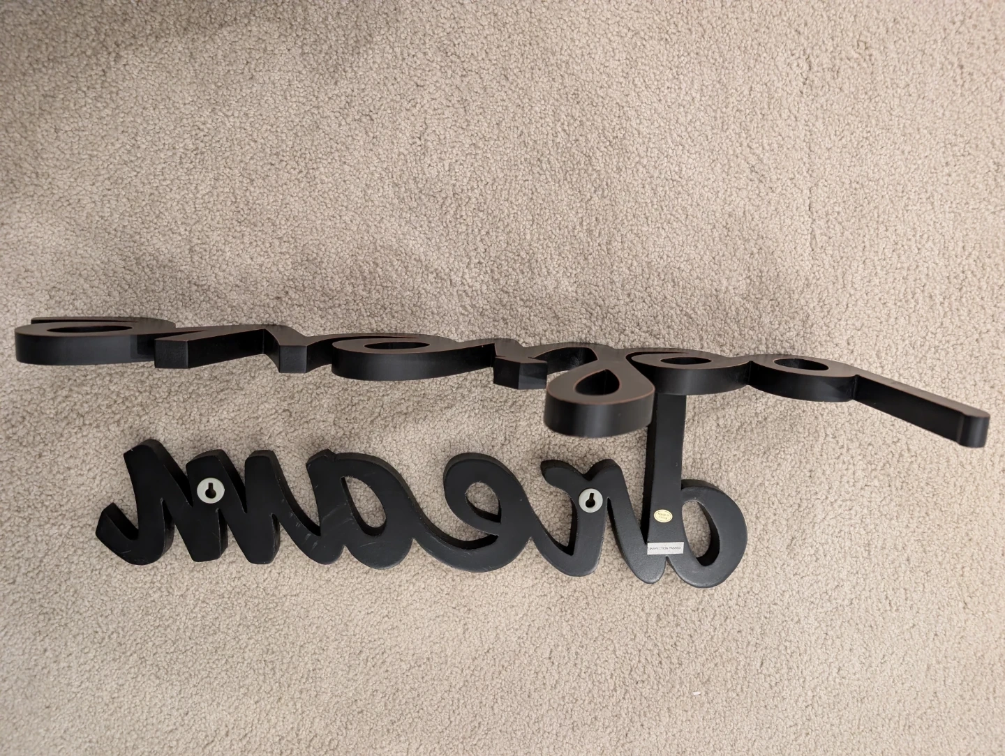 This is a set of two wooden wall art pieces spelling out "dream" and "believe". The words are in a stylish script font. They're a dark brown or black colour, perfect for adding a motivational touch to any room.