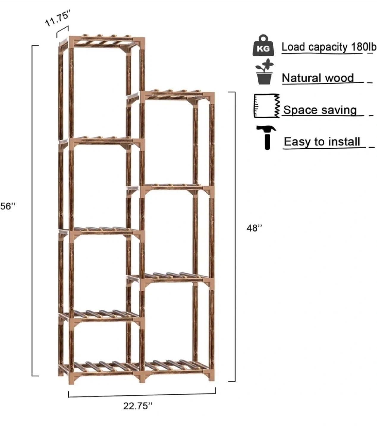 This customized multitiered plant stand features a sleek black wood stain, giving it a modern, versatile look that suits any space. The sides have been uniquely fitted with removable netting, attached using Velcro straps for easy removal whenever desired. This added detail provides extra support and protection for your plants while maintaining a clean, functional design.