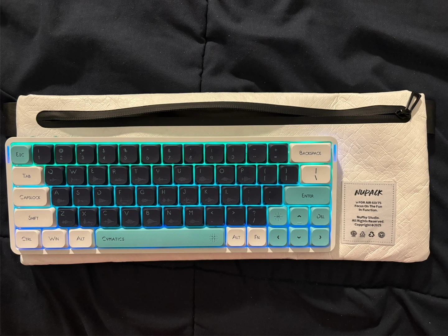 NuPhy Air60 v2, carrying case, Cymatics keycaps