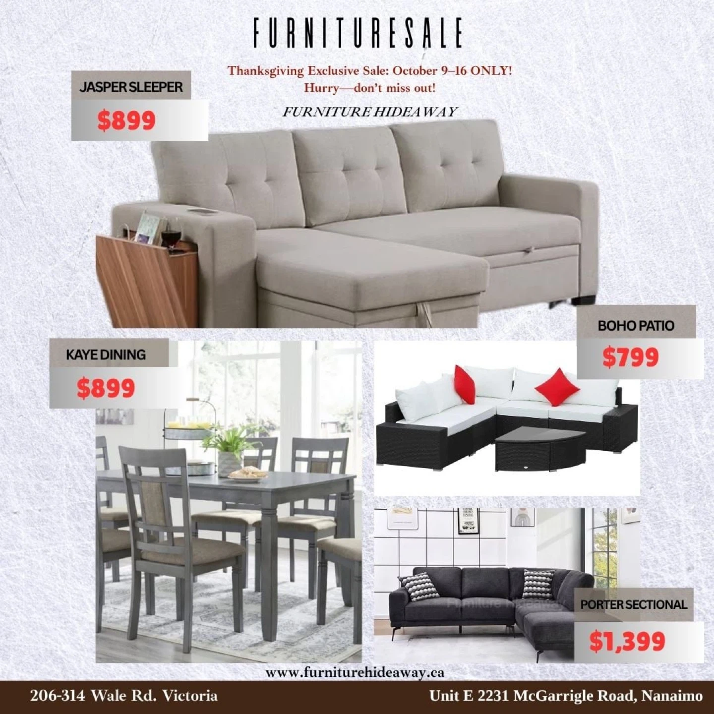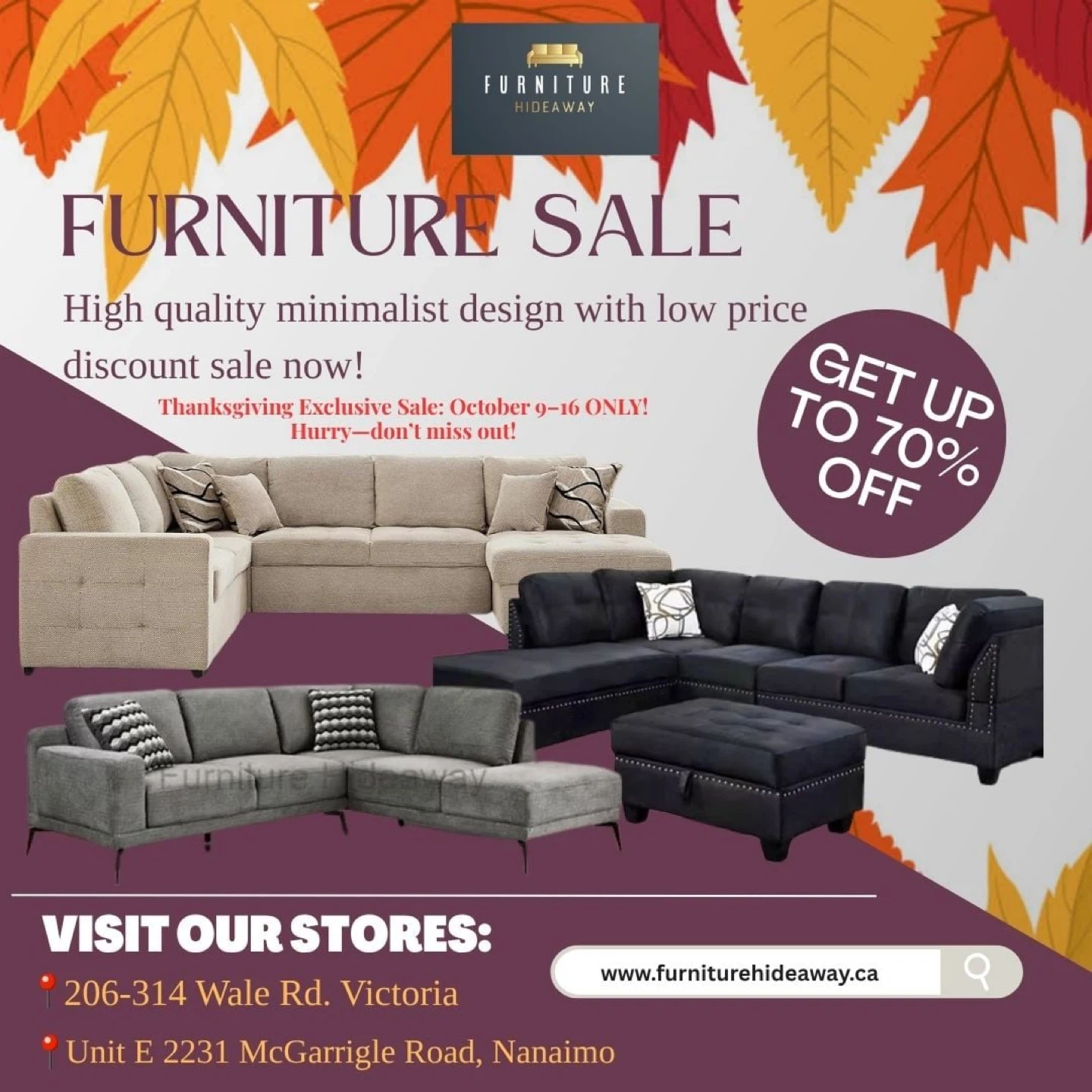 20Limited-Time Offer — Don’t Miss Out! Affordable, stylish furniture to refresh your home — only until October 16! Hurry in while supplies last! 📍 Visit Us At: 📌 206-314 Wale Rd, Victoria 📌 Unit E, 2231 McGarrigle Rd, Nanaimo ✨ Your dream furniture is just a visit away!