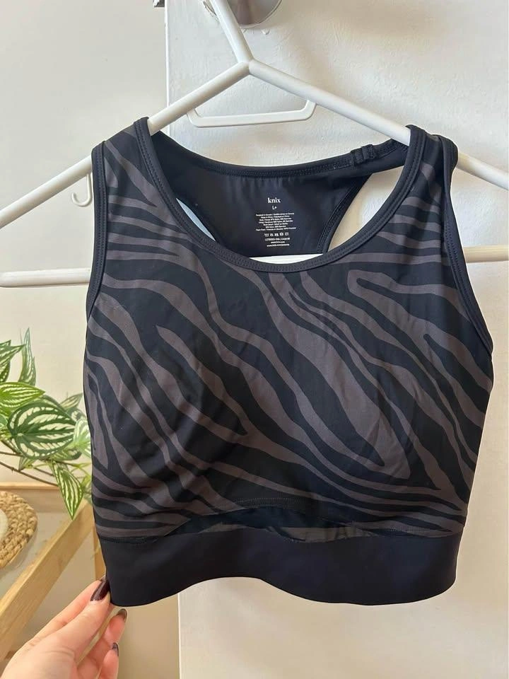 NEW - Selling a Knix Catalyst sports bra in a stylish zebra print! Perfect for workouts or everyday wear. It's super comfortable and supportive!
