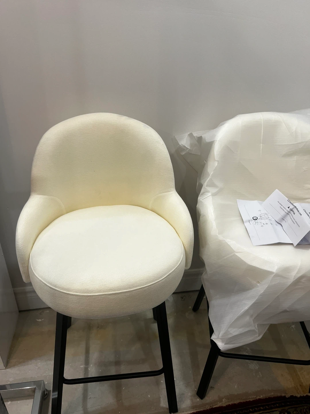A stylish cream bar stool, perfect for adding a touch of modern elegance to your kitchen or bar area. It's upholstered for comfort and sits on sturdy black legs.