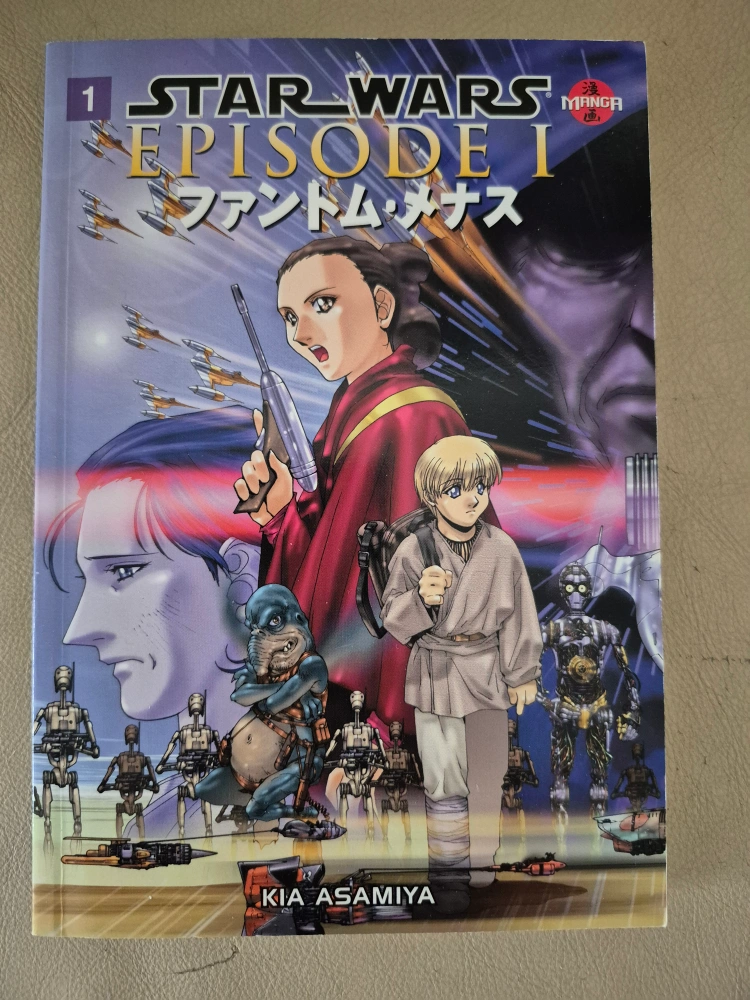 Japanese manga adaptation of Star Wars Episode I. First volume in the series. Features Padmé Amidala, Anakin Skywalker, and other characters. Artwork by Kia Asamiya.