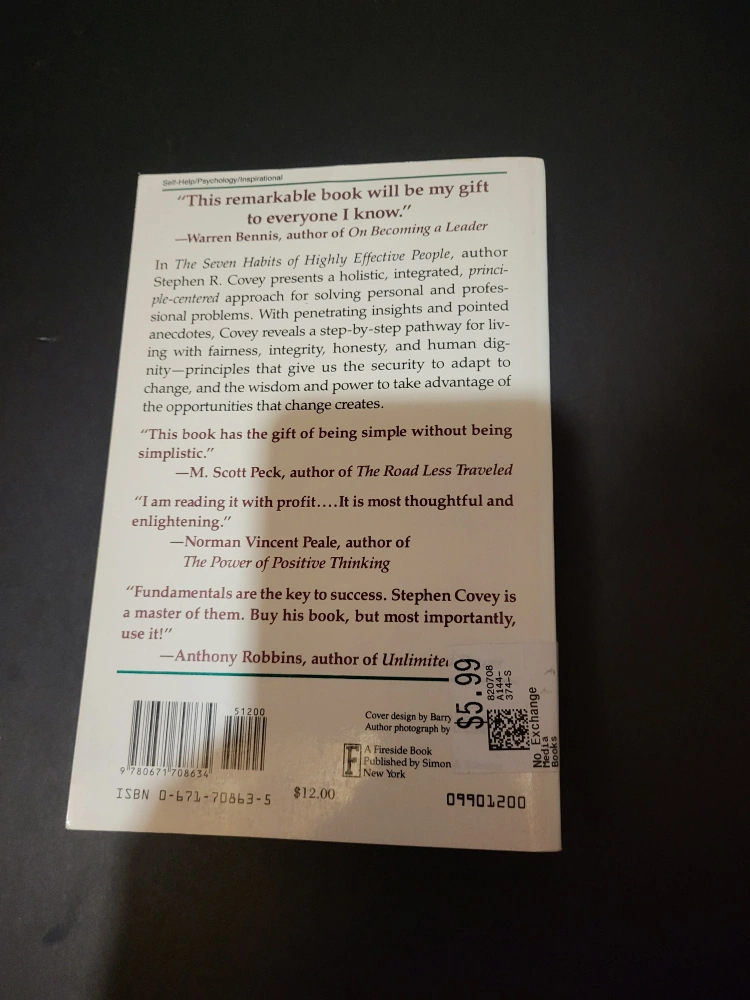 Selling a copy of "The 7 Habits of Highly Effective People" by Stephen R. Covey! It's a #1 National Bestseller, full of powerful lessons in personal change
