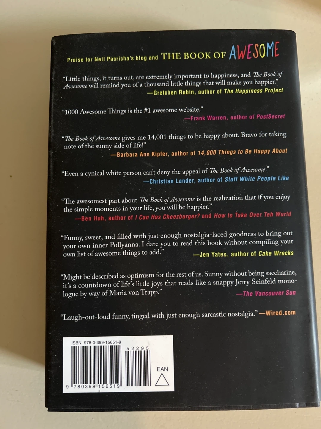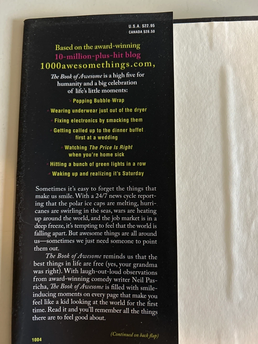 15Selling 'The Book of Awesome' by Neil Pasricha! It's a collection of simple, brilliant things that make life awesome, like popping bubble wrap and waking up on a Saturday. A feel-good read that reminds you of the little things to be happy about