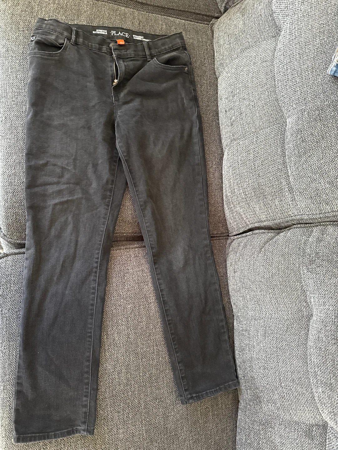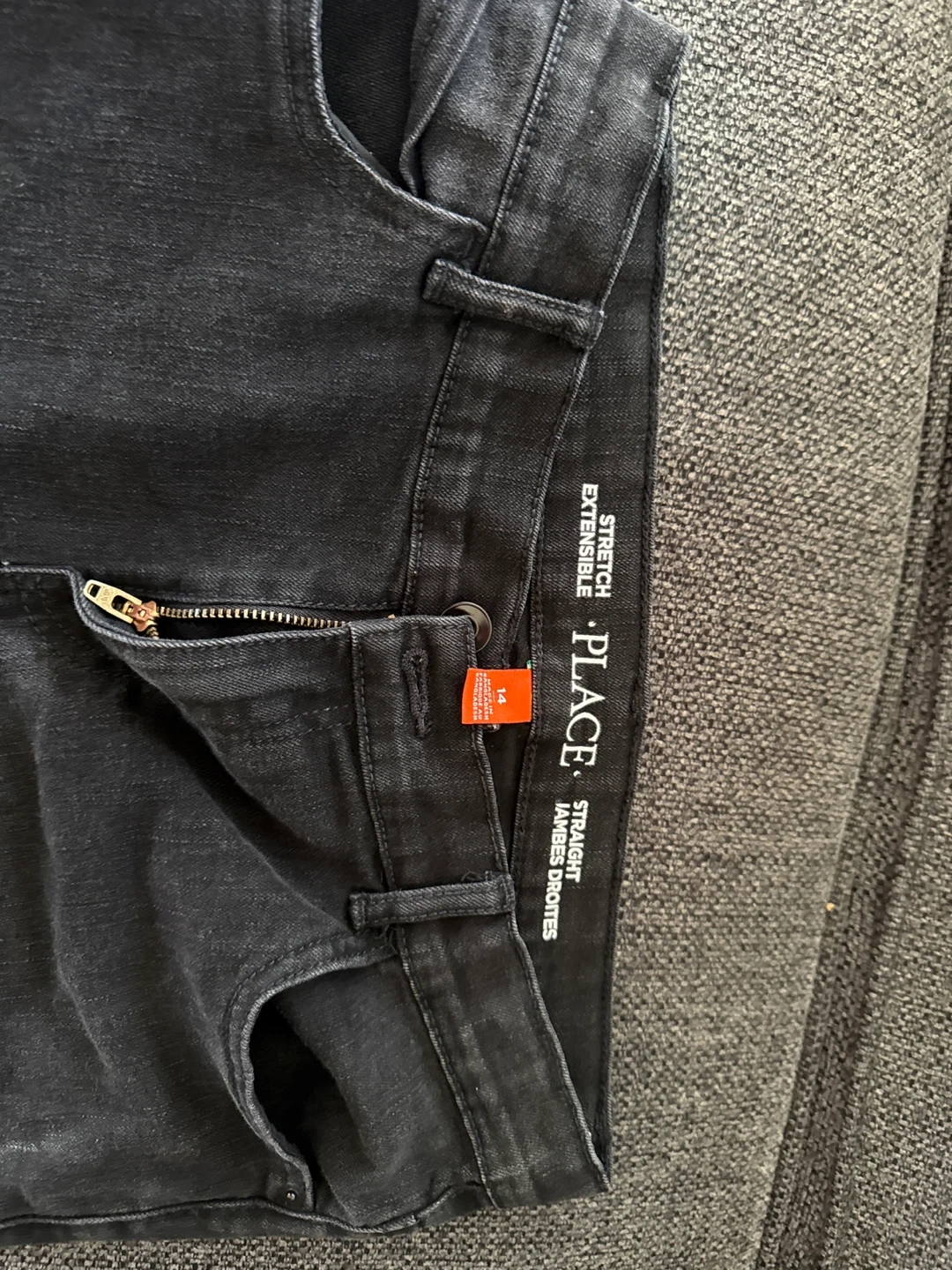 29Selling black jeans from The Children's Place. They are a size 14 and have a straight leg style. These jeans are in great condition and perfect for everyday wear! My son wore it twice.