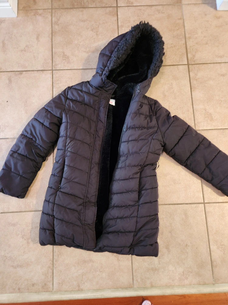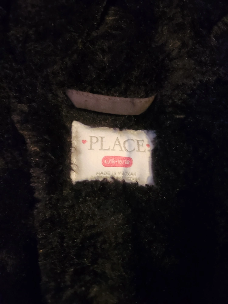 Cozy puffer jacket from The Children's Place! It's a size Large (10/12) and features a warm, furry lining. Perfect for keeping your little one snug during the colder months