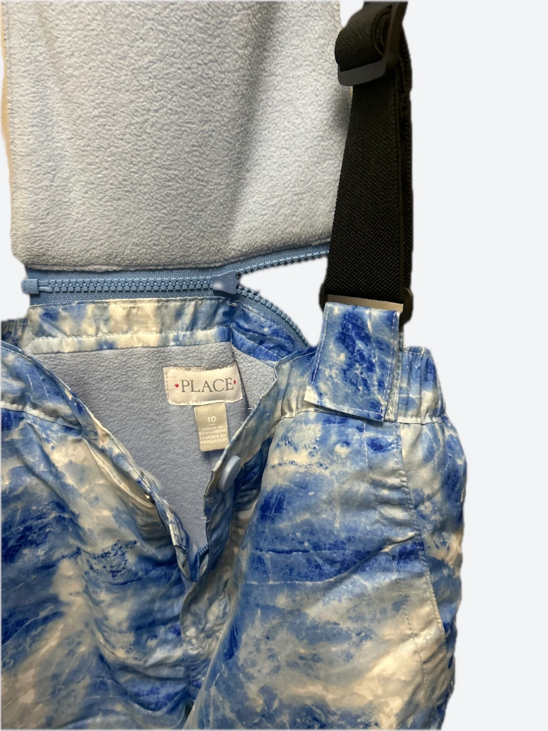 10Selling a pair of The Children's Place snow pants in size 10. They feature a blue and white marbled pattern. Perfect for keeping your little one warm and dry during winter activities!