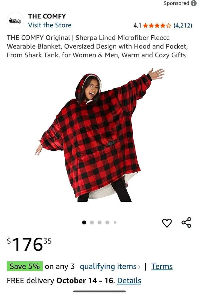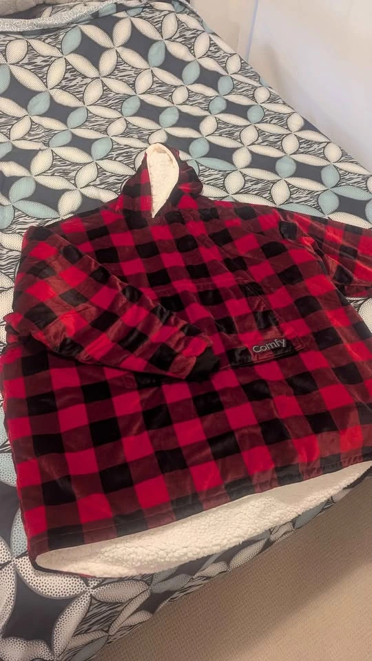 98The Original Comfy. Never worn (although does not have original tags). Color: Black and Red Check. One Size. Very warm and comfortable, perfect for the winter season!