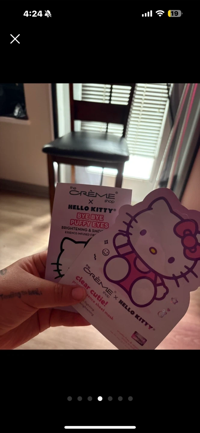 Selling two The Crème Shop x Hello Kitty face masks! One is the Bye Bye Puffy Eyes mask, and the other is the Clear Cutie! brightening essence sheet mask