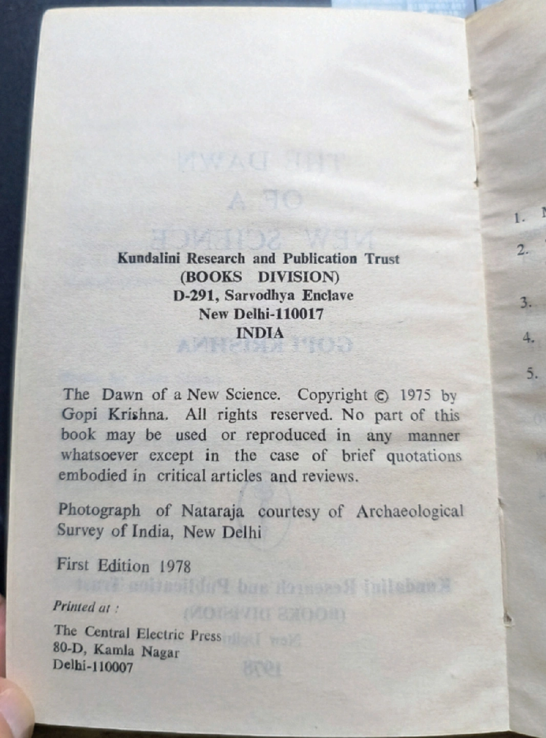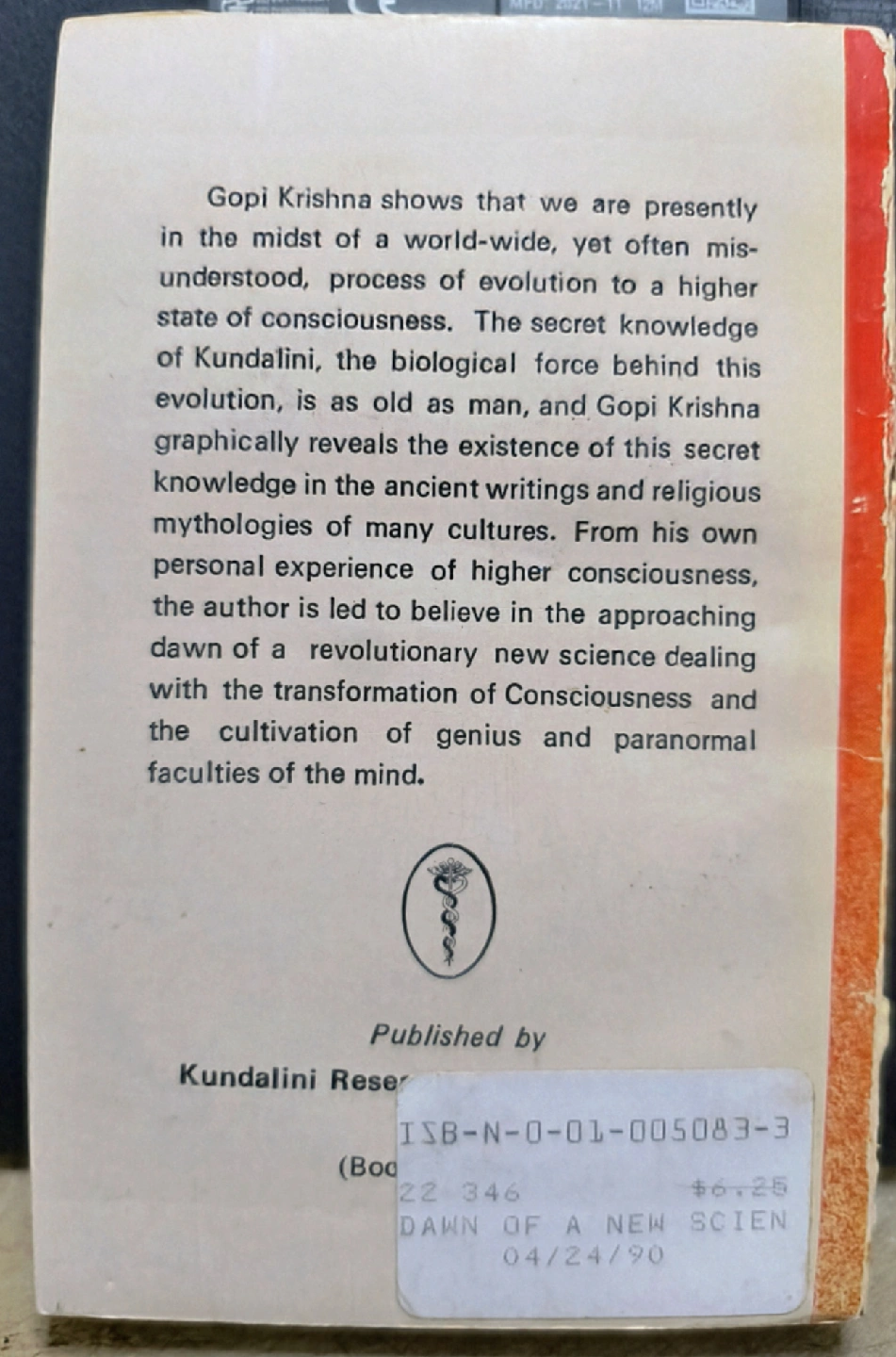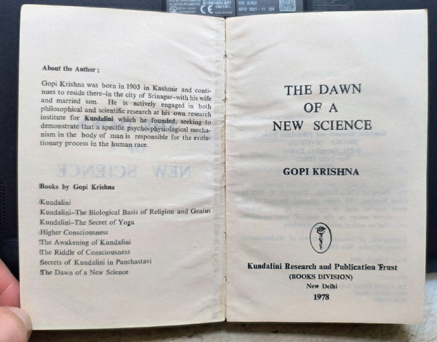 "The Dawn of a New Science" by Gopi Krishna. A First Edition from 1978, and published by Kundalini Research and Publication Trust in New Delhi. Delves into philosophical and scientific research related to Kundalini and its role in human evolution. A fascinating read for those interested in consciousness and the mysteries of the mind. ** PIck Up In Kentville **