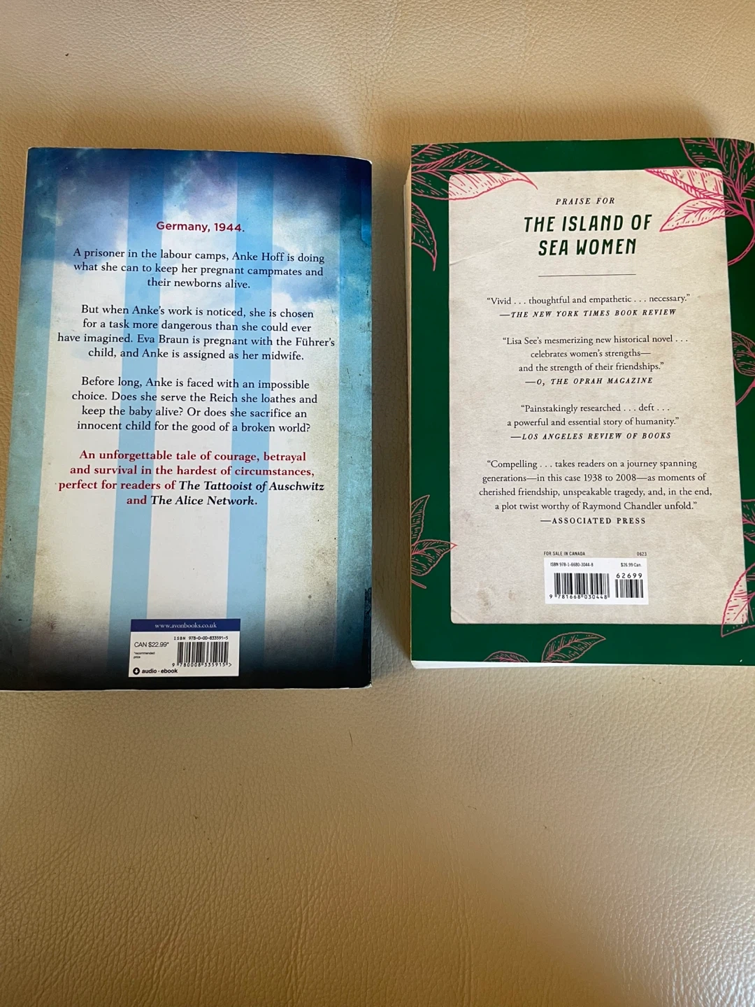 Selling two novels: "The German Midwife" by Mandy Robotham and "Lady Tan's Circle of Women" by Lisa See. Both are in great condition ( Lady Tan is SOLD ) and would make a wonderful addition to your reading list! Perfect for readers of historical fiction Both are trade soft cover. Sold separately 10.00 each or both for 17.00 . Accepting etransfer for guaranteed hold and FCFS for cash transactions.