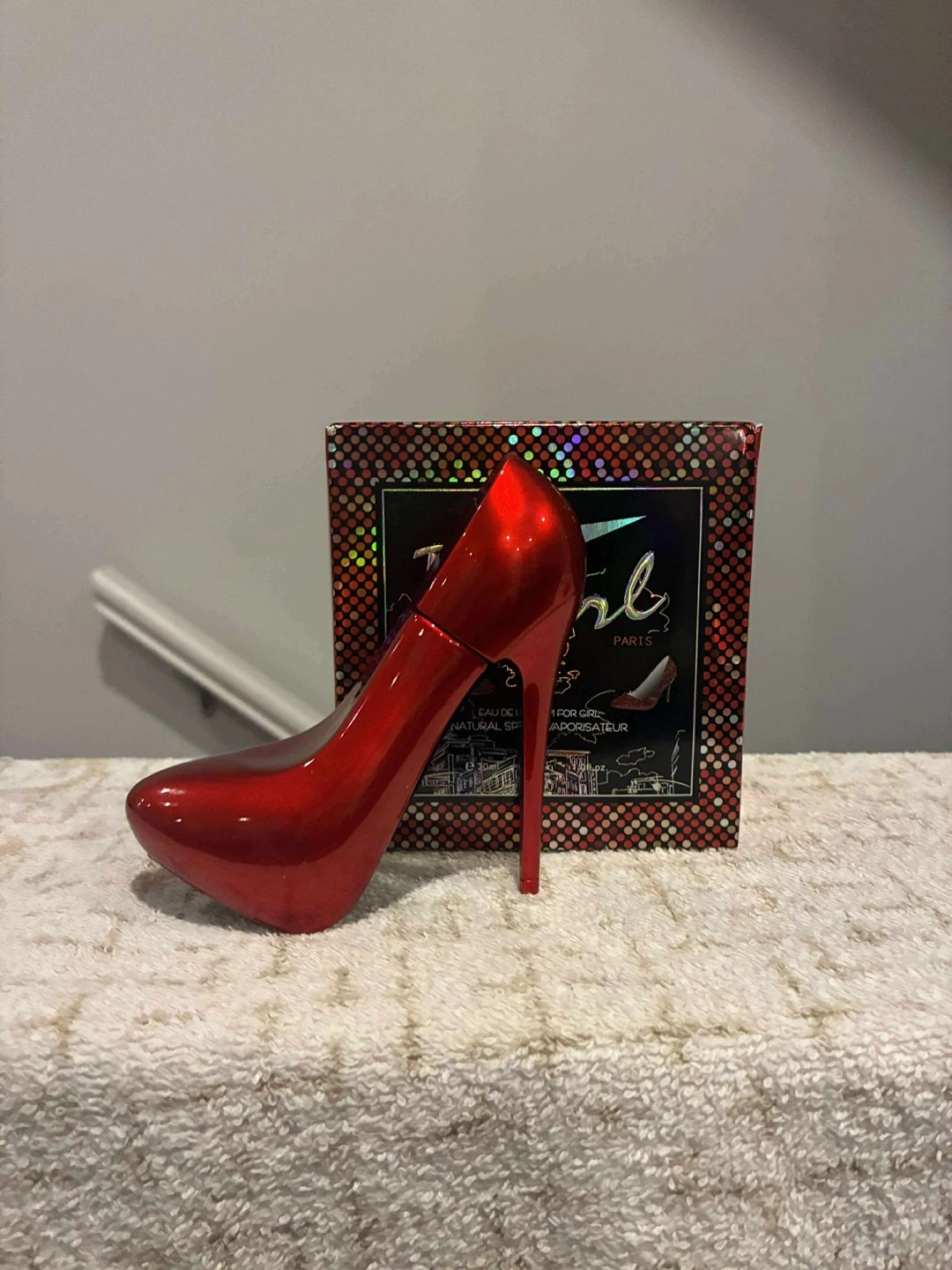 47Selling a The Girl Paris perfume. It's shaped like a red high heel shoe and comes with the original box.