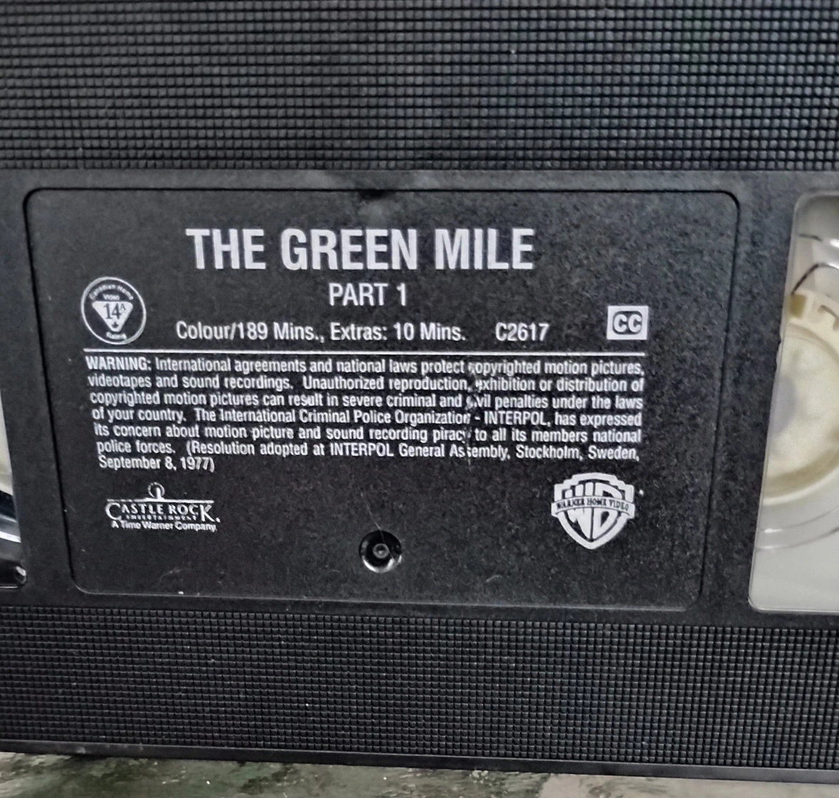 VHS tape of The Green Mile starring Tom Hanks. Includes bonus footage and a documentary. Part 1 of 2.