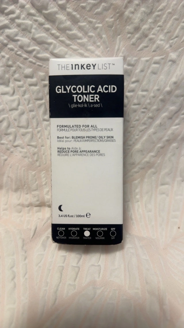 15Refresh your skincare routine with The Inkey List Glycolic Acid Toner, a 100ml bottle formulated for all skin types. This used toner helps reduce pore appearance, leaving your skin feeling clean, hydrated, and moisturized. It's a treat for your skin! Additional features: * Size: 3.4 US fl.oz/100ml * Key Benefits: Cleans, Hydrates, Treats, Moisturizes, SPF * Formulated for: All skin types, Blemish Prone/Oily Skin * Helps to: Reduce pore appearance Based on recent listings, a used bottle of this toner is typically priced between $8 and $15. The original price is $20 (without tax). I'm offering a good price for its brand new condition. If the ad is up, it's available!