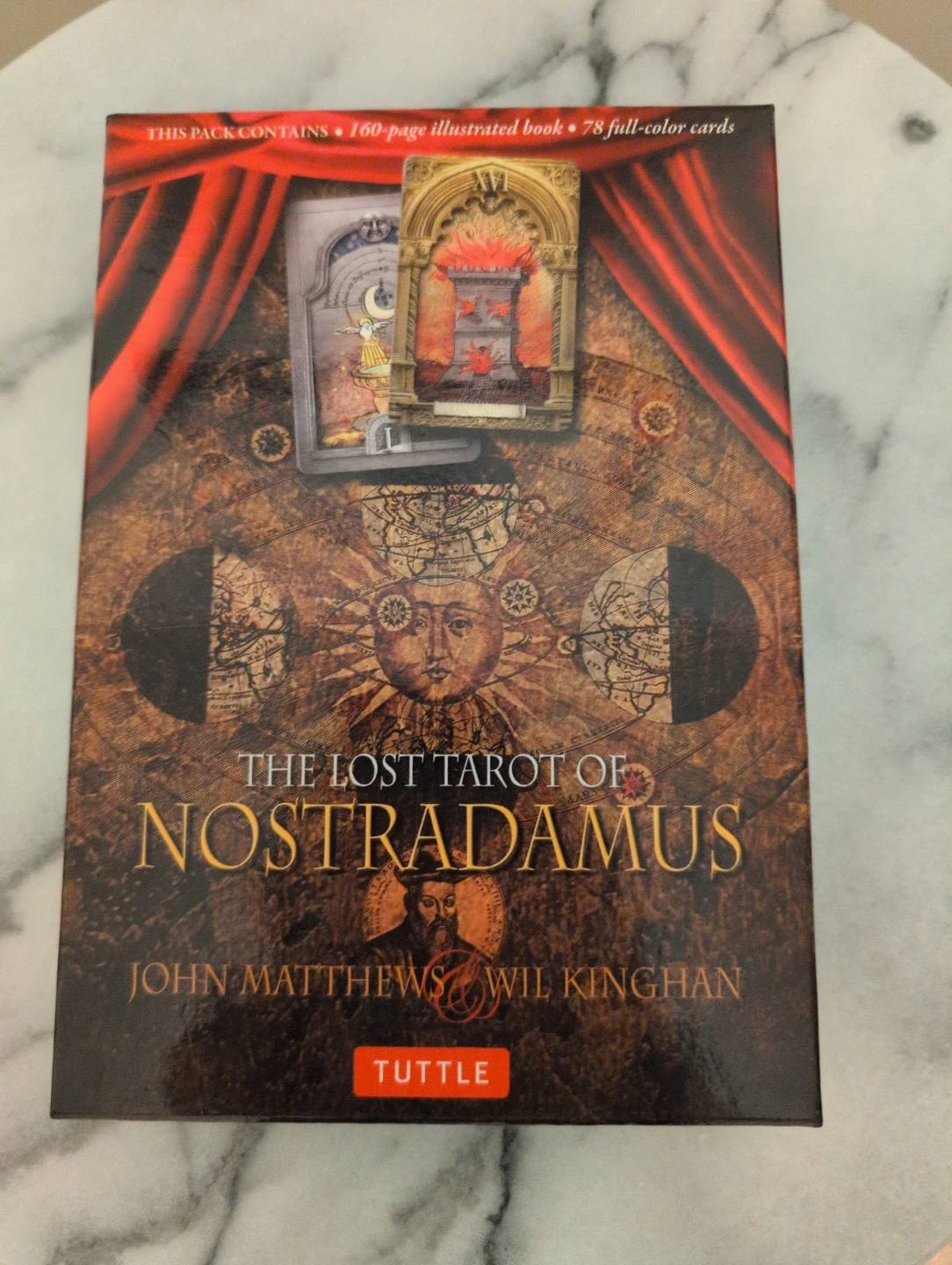133Selling The Lost Tarot of Nostradamus by John Matthews and Wil Kinghan. This pack contains a 160-page illustrated book and 78 full-colour Tarot cards. Comes with the original box!