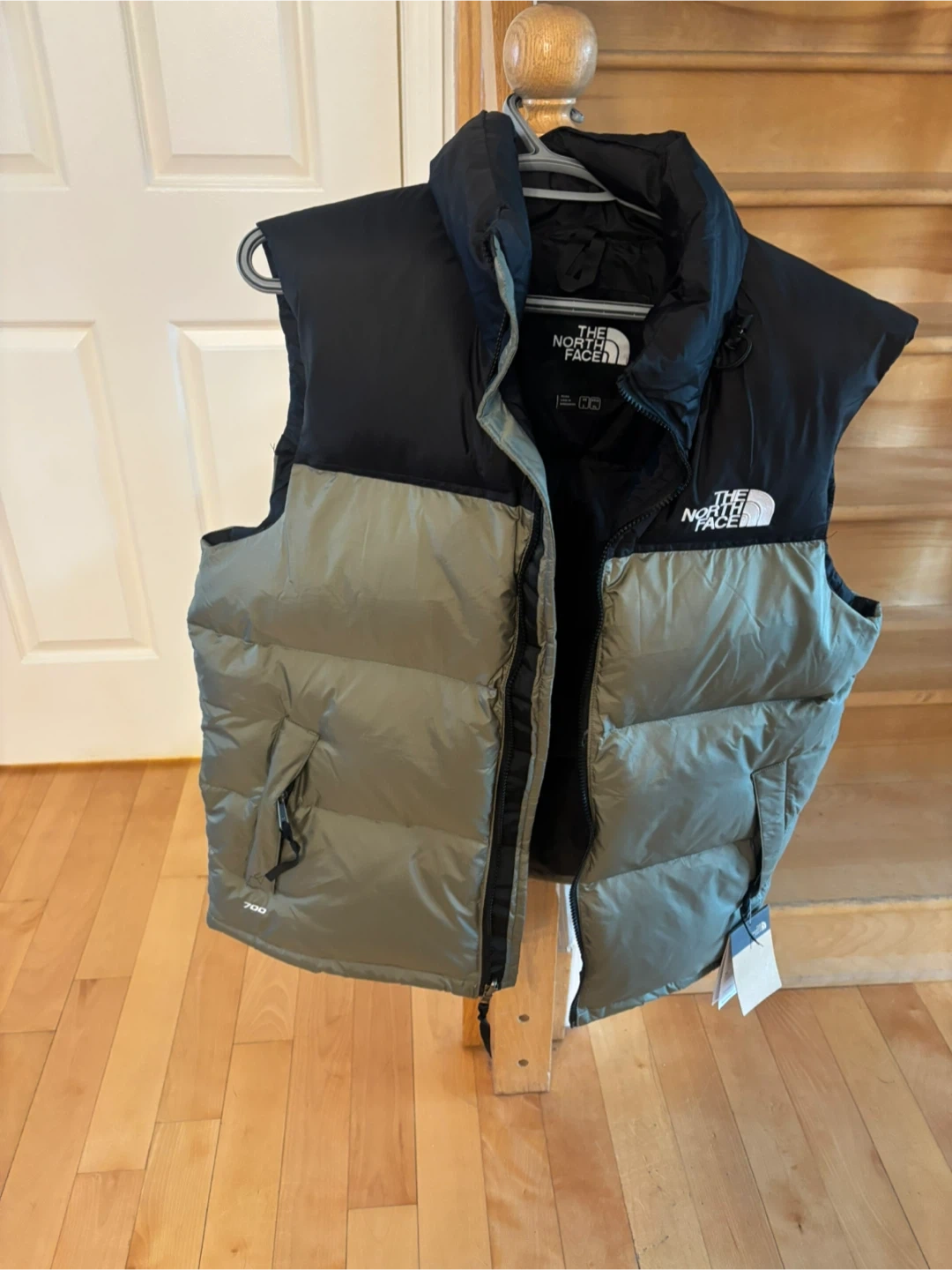 10Selling a The North Face 700 Puffer Vest. It's in great condition and ready for a new home! This vest features a stylish two-tone design with a black upper section and a khaki lower section. Perfect for adding an extra layer of warmth and style to your outfit