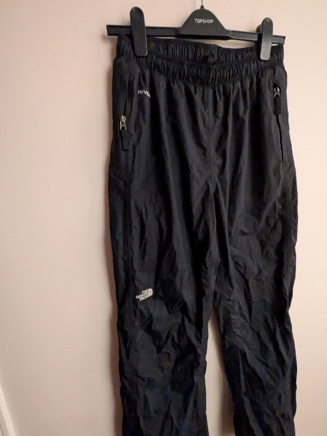 The North Face Hyvent pants in black. Waterproof - great for hiking or other outdoor activities. Womens size Medium.