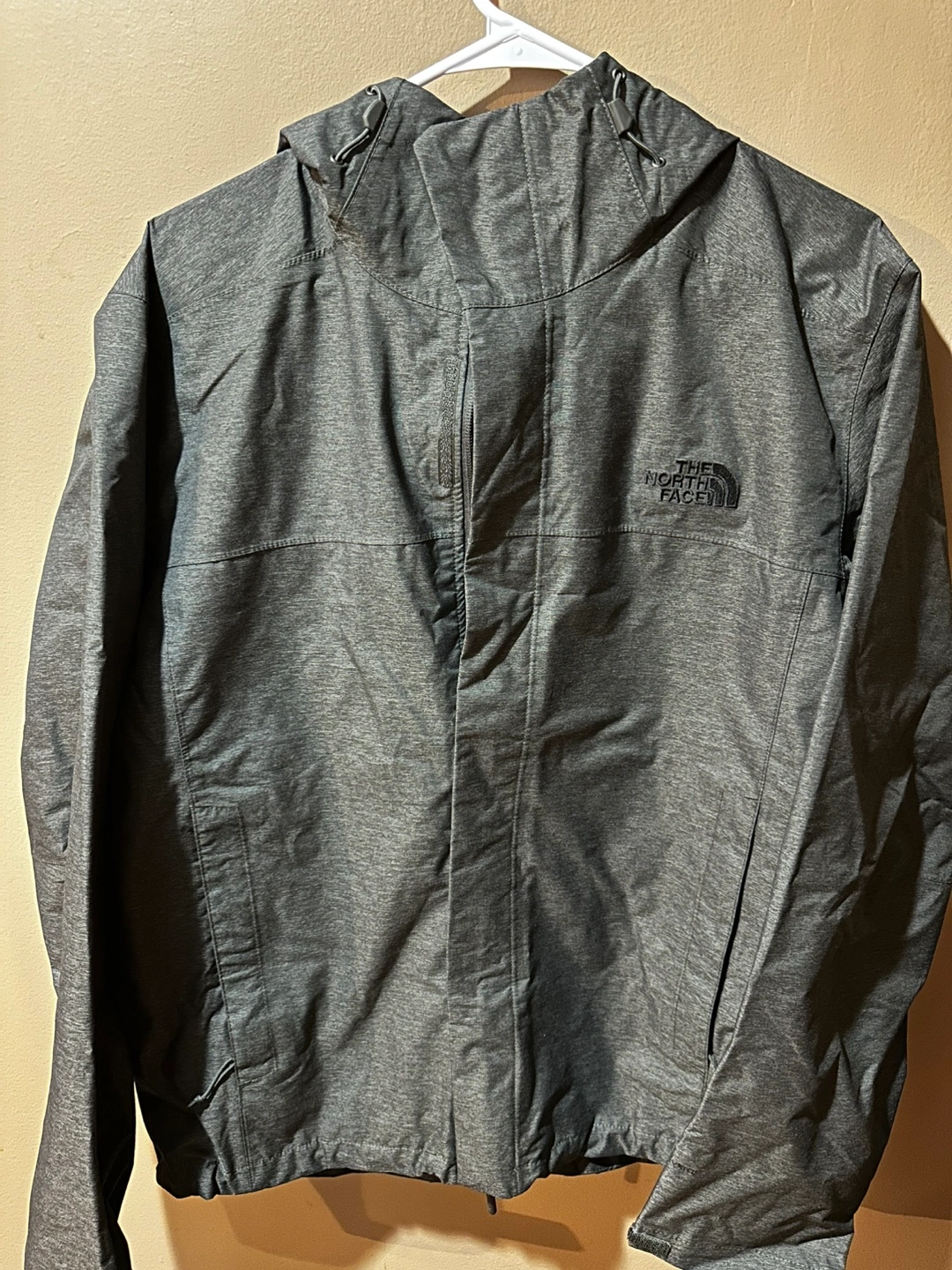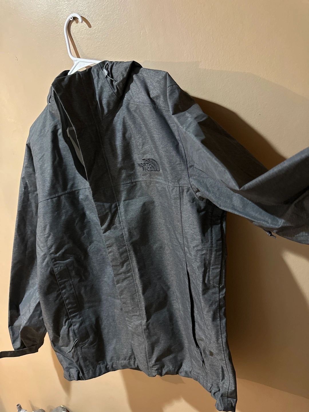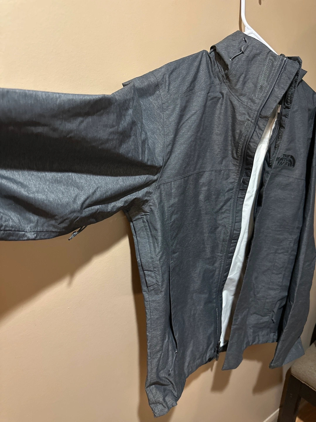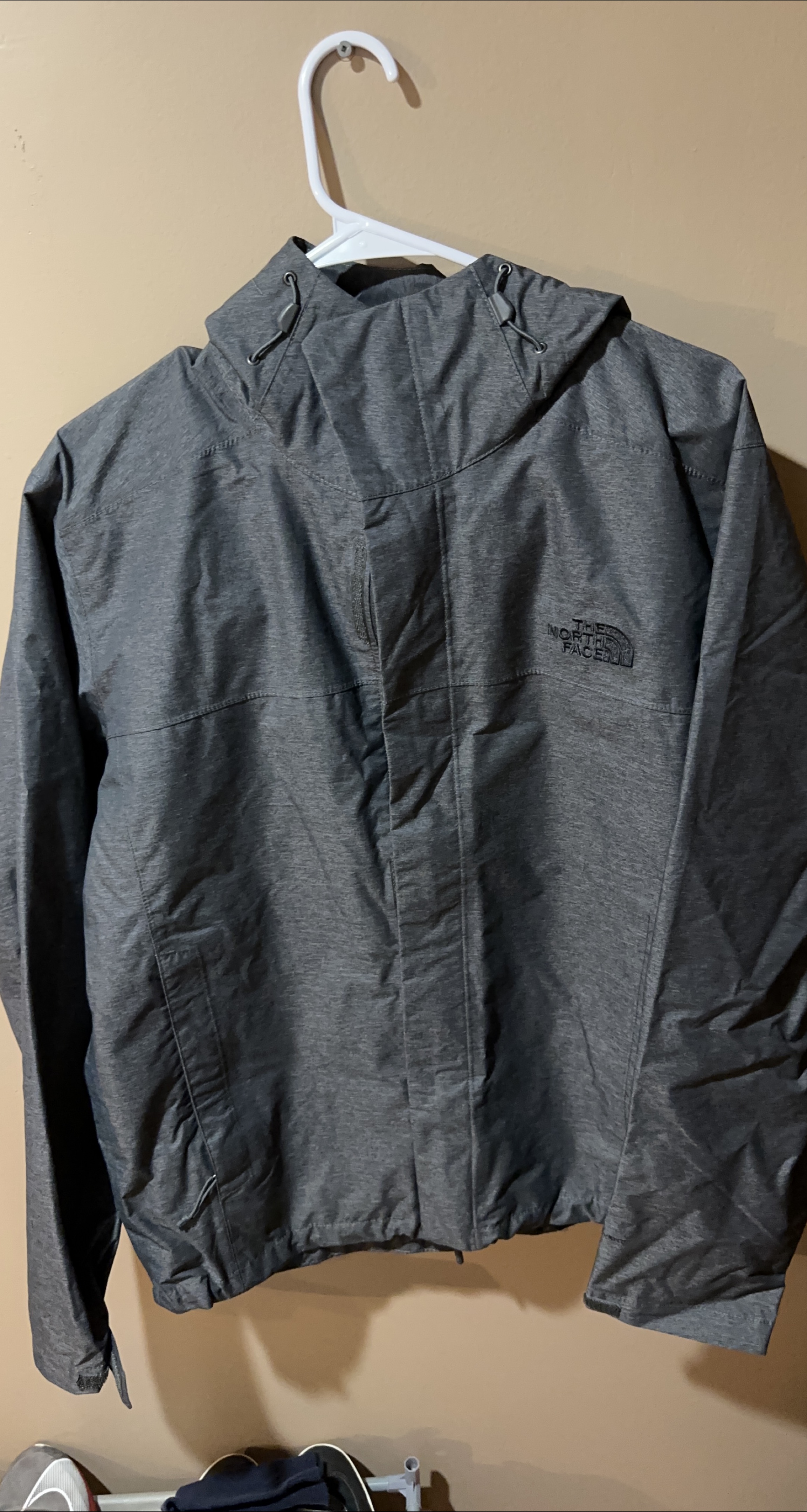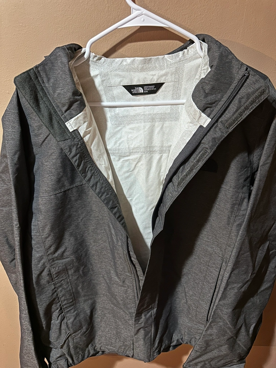 60A jacket with a hood. Features a zipper closure. It has two pockets. You will find this jacket perfect for those cool fall evenings and its water resistant. Never worn its brand new